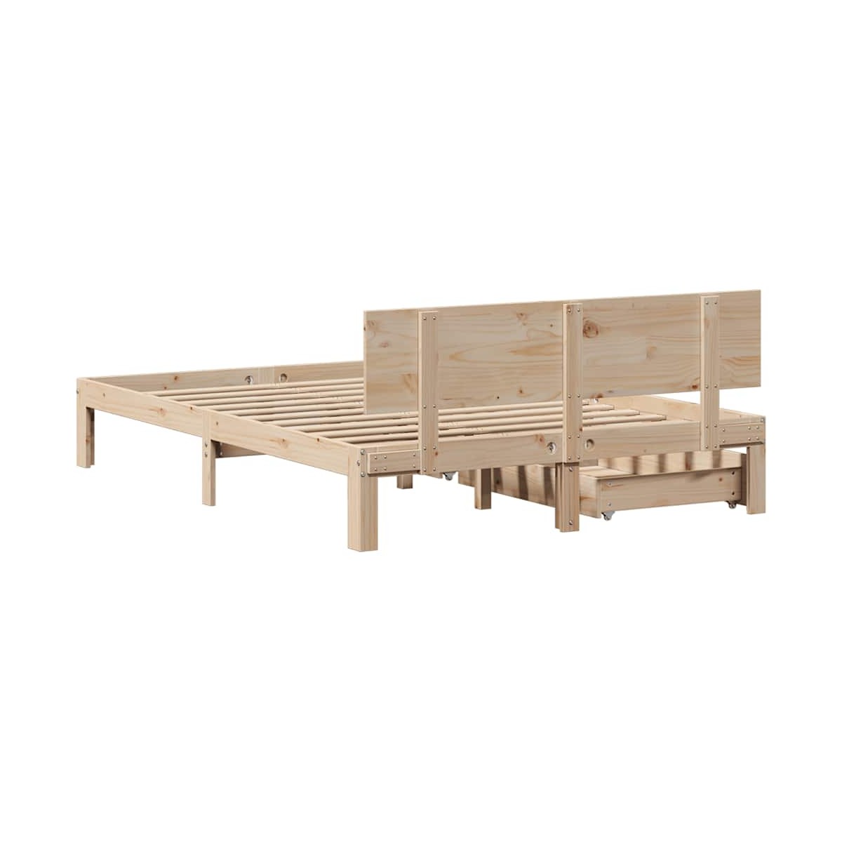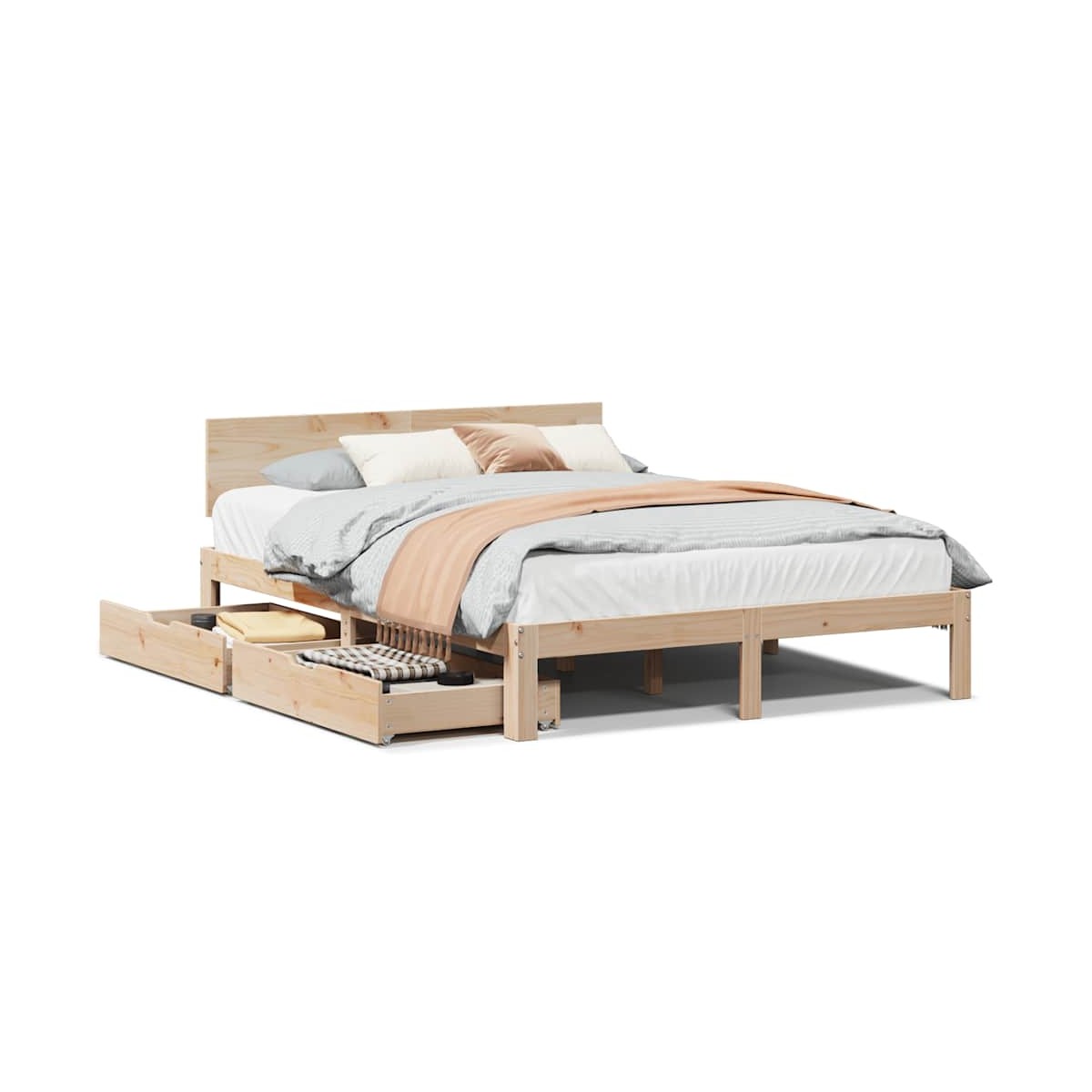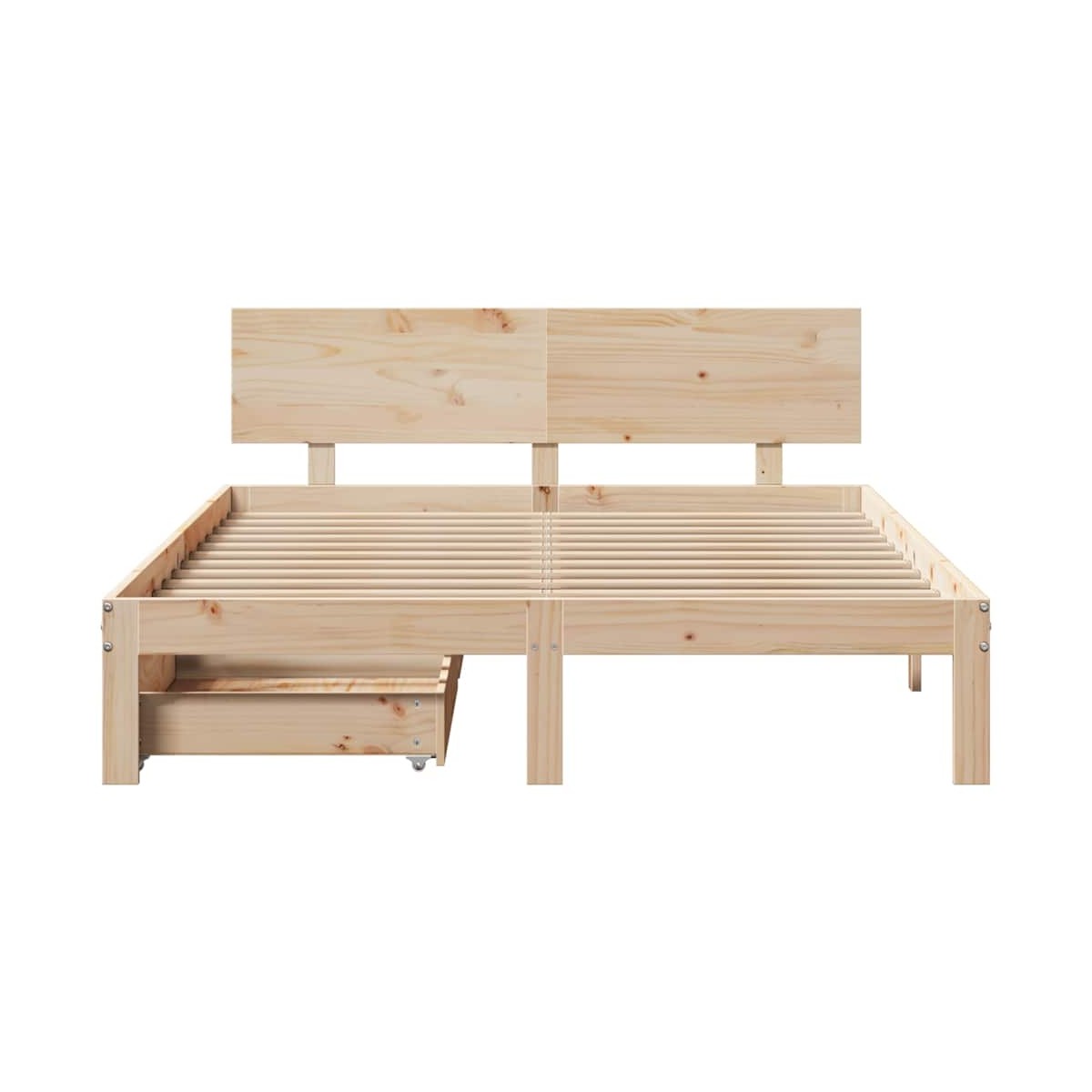 Consigue un sueño más reparador con esta estructura de cama. Es un aporte acogedor para cualquier dormitorio. Estructura estable y duradera: La madera de pino maciza es conocida por su resistencia y durabilidad. Sus vetas rectas y sus característicos nudos contribuyen a su encanto rústico.Somier de láminas para un soporte óptimo: La estructura de cama está equipada con un somier de láminas para el apoyo y la transpirabilidad del colchón.Espacio de almacenamiento extra: Esta base de cama cuenta con dos cajones debajo, lo que proporciona almacenamiento para artículos como ropa de cama, ropa de temporada y juguetes.Cabecero versátil: Este somier viene con un cabecero que proporciona un excelente soporte para la espalda cuando te sientas en la cama para leer o ver la televisión, a la vez que sirve como elemento decorativo.Maniobrabilidad sin esfuerzo: Este cajón de almacenamiento bajo la cama cuenta con cuatro ruedas, que proporcionan una maniobrabilidad suave y sin esfuerzo para deslizarse dentro y fuera de debajo de tu cama. Información útil:El colchón no está incluido con la cama. Disponemos de una variada selección de colchones. Puedes echar un vistazo a nuestra tienda para buscar el colchón correspondiente.