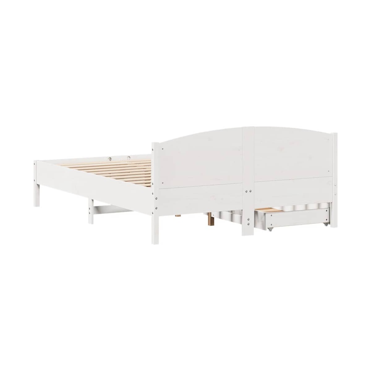 Consigue un sueño más reparador con esta estructura de cama. Es un aporte acogedor para cualquier dormitorio. Estructura estable y duradera: La madera de pino maciza es conocida por su resistencia y durabilidad. Sus vetas rectas y sus característicos nudos contribuyen a su encanto rústico.Somier de láminas para un soporte óptimo: La estructura de cama está equipada con un somier de láminas para el apoyo y la transpirabilidad del colchón.Cabecero versátil: Esta estructura de cama viene con un cabecero que proporciona un excelente soporte para la espalda cuando te sientas en la cama para leer o ver la televisión, a la vez que sirve como elemento decorativo.Aproveche al máximo el espacio: Este somier cuenta con dos cajones debajo, que proporcionan almacenamiento para artículos como ropa de cama extra, ropa de temporada y juguetes.Maniobrabilidad sin esfuerzo: Este cajón de almacenamiento bajo la cama cuenta con cuatro ruedas, que proporcionan una maniobrabilidad suave y sin esfuerzo para deslizarse dentro y fuera de debajo de tu cama. Información útil:El colchón no está incluido con la cama. Disponemos de una variada selección de colchones. Puedes echar un vistazo a nuestra tienda para buscar el colchón correspondiente.
