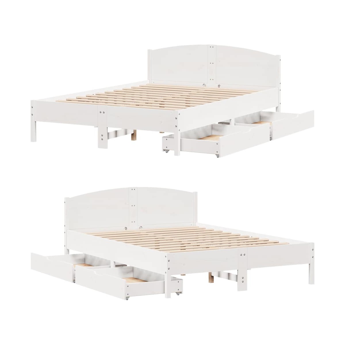 Consigue un sueño más reparador con esta estructura de cama. Es un aporte acogedor para cualquier dormitorio. Estructura estable y duradera: La madera de pino maciza es conocida por su resistencia y durabilidad. Sus vetas rectas y sus característicos nudos contribuyen a su encanto rústico.Somier de láminas para un soporte óptimo: La estructura de cama está equipada con un somier de láminas para el apoyo y la transpirabilidad del colchón.Cabecero versátil: Esta estructura de cama viene con un cabecero que proporciona un excelente soporte para la espalda cuando te sientas en la cama para leer o ver la televisión, a la vez que sirve como elemento decorativo.Aproveche al máximo el espacio: Este somier cuenta con dos cajones debajo, que proporcionan almacenamiento para artículos como ropa de cama extra, ropa de temporada y juguetes.Maniobrabilidad sin esfuerzo: Este cajón de almacenamiento bajo la cama cuenta con cuatro ruedas, que proporcionan una maniobrabilidad suave y sin esfuerzo para deslizarse dentro y fuera de debajo de tu cama. Información útil:El colchón no está incluido con la cama. Disponemos de una variada selección de colchones. Puedes echar un vistazo a nuestra tienda para buscar el colchón correspondiente.