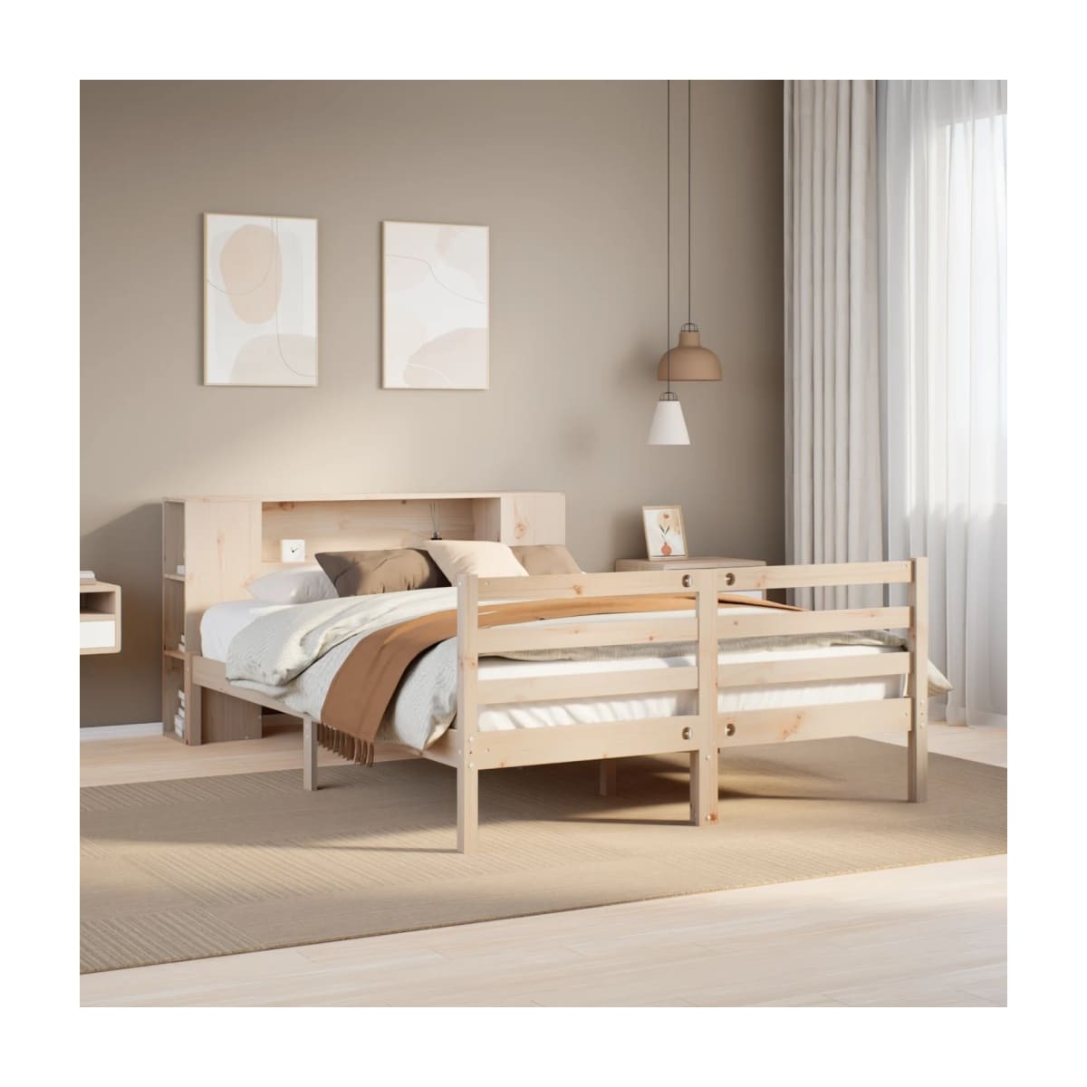 ¡Consigue una mejor noche de sueño reparador con esta cama con estantería! Es un aporte acogedor para cualquier dormitorio. Estructura estable y duradera: La madera de pino maciza es conocida por su resistencia y durabilidad. Sus vetas rectas y sus característicos nudos contribuyen a su encanto rústico.Somier de láminas para un soporte óptimo: La estructura de cama está equipada con un somier de láminas para el apoyo y la transpirabilidad del colchón.Amplio espacio de almacenamiento: El cabecero de estantería ofrece un amplio espacio de almacenamiento para mantener libros, artículos decorativos o pertenencias personales al alcance de la mano, lo que reduce el desorden en el dormitorio.Práctico pie de cama: El pie de cama no solo contribuye a la estabilidad general del marco de la cama, proporcionando un entorno seguro para dormir, sino que también asegura su colchón en su lugar y evita que las mantas, sábanas y otra ropa de cama se caigan del extremo de la cama, manteniendo una apariencia ordenada.Ahorro de espacio: Este cabecero es una opción de ahorro de espacio que puede sustituir la necesidad de una mesilla de noche, ayudando a maximizar el espacio de tu dormitorio, y haciéndolo ideal para espacios pequeños o limitados. Información útil:El colchón no está incluido con la cama. Disponemos de una variada selección de colchones. Puedes echar un vistazo a nuestra tienda para buscar el colchón correspondiente.