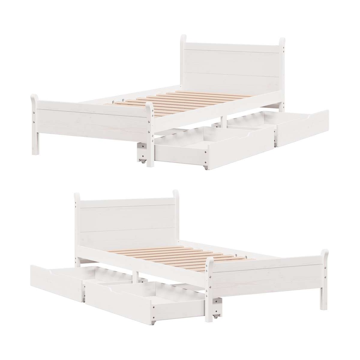 Consigue un sueño más reparador con esta estructura de cama. Es un aporte acogedor para cualquier dormitorio. Estructura estable y duradera: La madera de pino maciza es conocida por su resistencia y durabilidad. Sus vetas rectas y sus característicos nudos contribuyen a su encanto rústico.Somier de láminas para un soporte óptimo: El base de cama está equipado con un somier de láminas para el apoyo y la transpirabilidad del colchón.Maniobrabilidad sin esfuerzo: Este cajón de almacenamiento bajo la cama cuenta con cuatro ruedas, que proporcionan una maniobrabilidad suave y sin esfuerzo para deslizarse dentro y fuera de debajo de tu cama.Patas estables y duraderas: Este somier está sostenido por patas resistentes, lo que garantiza estabilidad, seguridad y firmeza.Cabecero versátil: Esta cama de paneles viene con un cabecero que proporciona un excelente soporte para la espalda cuando te sientas en la cama para leer o ver la televisión, a la vez que sirve como elemento decorativo. Información útil:El colchón no está incluido con la cama. Disponemos de una variada selección de colchones. Puedes echar un vistazo a nuestra tienda para buscar el colchón correspondiente.
