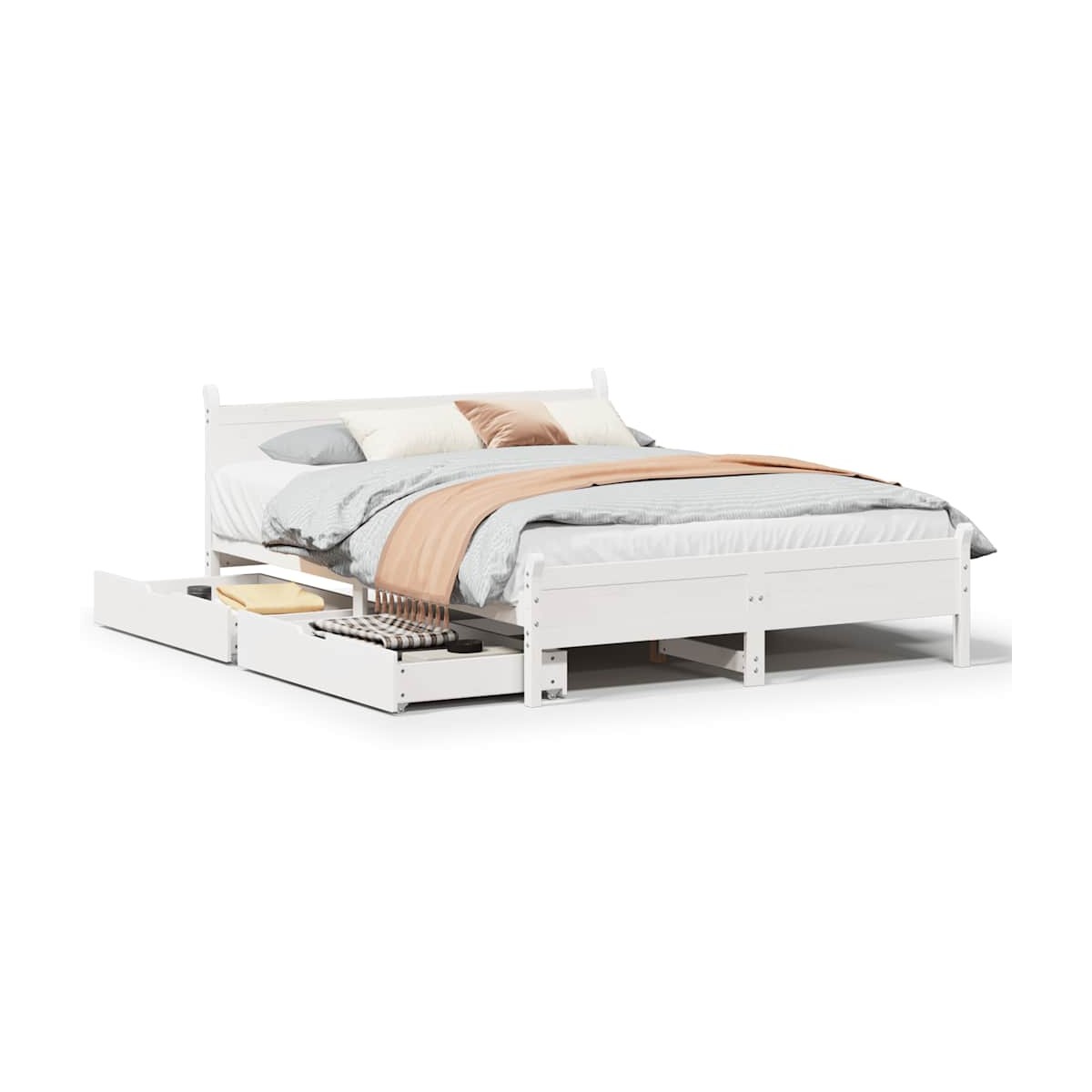 Consigue un sueño más reparador con esta estructura de cama. Es un aporte acogedor para cualquier dormitorio. Estructura estable y duradera: La madera de pino maciza es conocida por su resistencia y durabilidad. Sus vetas rectas y sus característicos nudos contribuyen a su encanto rústico.Somier de láminas para un soporte óptimo: El base de cama está equipado con un somier de láminas para el apoyo y la transpirabilidad del colchón.Maniobrabilidad sin esfuerzo: Este cajón de almacenamiento bajo la cama cuenta con cuatro ruedas, que proporcionan una maniobrabilidad suave y sin esfuerzo para deslizarse dentro y fuera de debajo de tu cama.Patas estables y duraderas: Este somier está sostenido por patas resistentes, lo que garantiza estabilidad, seguridad y firmeza.Cabecero versátil: Esta cama de paneles viene con un cabecero que proporciona un excelente soporte para la espalda cuando te sientas en la cama para leer o ver la televisión, a la vez que sirve como elemento decorativo. Información útil:El colchón no está incluido con la cama. Disponemos de una variada selección de colchones. Puedes echar un vistazo a nuestra tienda para buscar el colchón correspondiente.