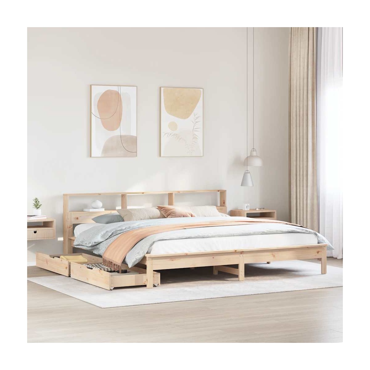 ¡Consigue una mejor noche de sueño reparador con esta cama con estantería! Es un aporte acogedor para cualquier dormitorio. Estructura estable y duradera: La madera de pino maciza es conocida por su resistencia y durabilidad. Sus vetas rectas y sus característicos nudos contribuyen a su encanto rústico.Somier de láminas para un soporte óptimo: El base de cama está equipado con un somier de láminas para el apoyo y la transpirabilidad del colchón.Maniobrabilidad sin esfuerzo: Este cajón de almacenamiento bajo la cama cuenta con cuatro ruedas, que proporcionan una maniobrabilidad suave y sin esfuerzo para deslizarse dentro y fuera de debajo de tu cama.Patas estables y duraderas: Este somier está sostenido por patas resistentes, lo que garantiza estabilidad, seguridad y firmeza.Ahorro de espacio: Este cabecero es una opción de ahorro de espacio que puede sustituir la necesidad de una mesilla de noche, ayudando a maximizar el espacio de tu dormitorio, y haciéndolo ideal para espacios pequeños o limitados. Información útil:El colchón no está incluido con la cama. Disponemos de una variada selección de colchones. Puedes echar un vistazo a nuestra tienda para buscar el colchón correspondiente.