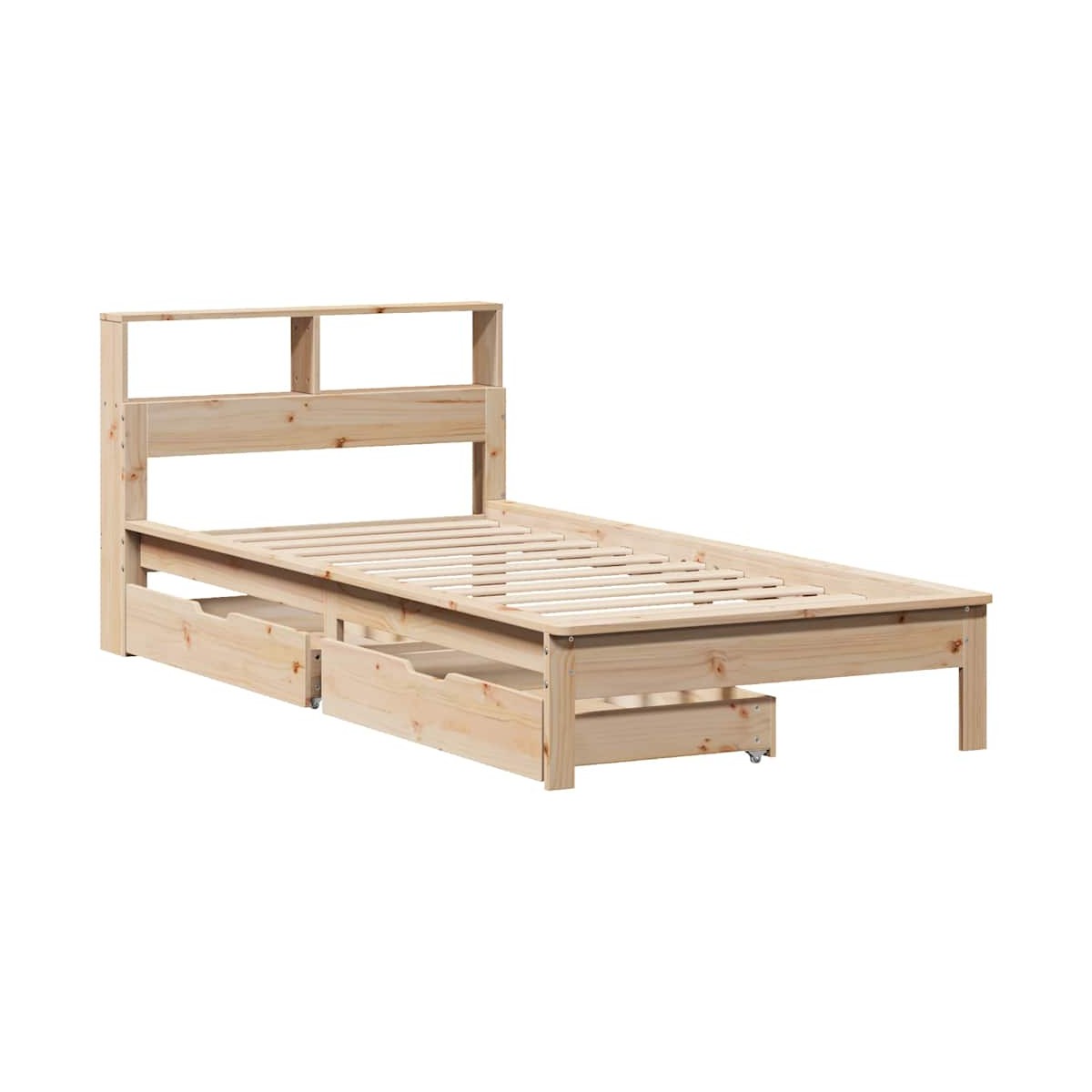¡Consigue una mejor noche de sueño reparador con esta cama con estantería! Es un aporte acogedor para cualquier dormitorio. Estructura estable y duradera: La madera de pino maciza es conocida por su resistencia y durabilidad. Sus vetas rectas y sus característicos nudos contribuyen a su encanto rústico.Somier de láminas para un soporte óptimo: El base de cama está equipado con un somier de láminas para el apoyo y la transpirabilidad del colchón.Maniobrabilidad sin esfuerzo: Este cajón de almacenamiento bajo la cama cuenta con cuatro ruedas, que proporcionan una maniobrabilidad suave y sin esfuerzo para deslizarse dentro y fuera de debajo de tu cama.Patas estables y duraderas: Este somier está sostenido por patas resistentes, lo que garantiza estabilidad, seguridad y firmeza.Ahorro de espacio: Este cabecero es una opción de ahorro de espacio que puede sustituir la necesidad de una mesilla de noche, ayudando a maximizar el espacio de tu dormitorio, y haciéndolo ideal para espacios pequeños o limitados. Información útil:El colchón no está incluido con la cama. Disponemos de una variada selección de colchones. Puedes echar un vistazo a nuestra tienda para buscar el colchón correspondiente.