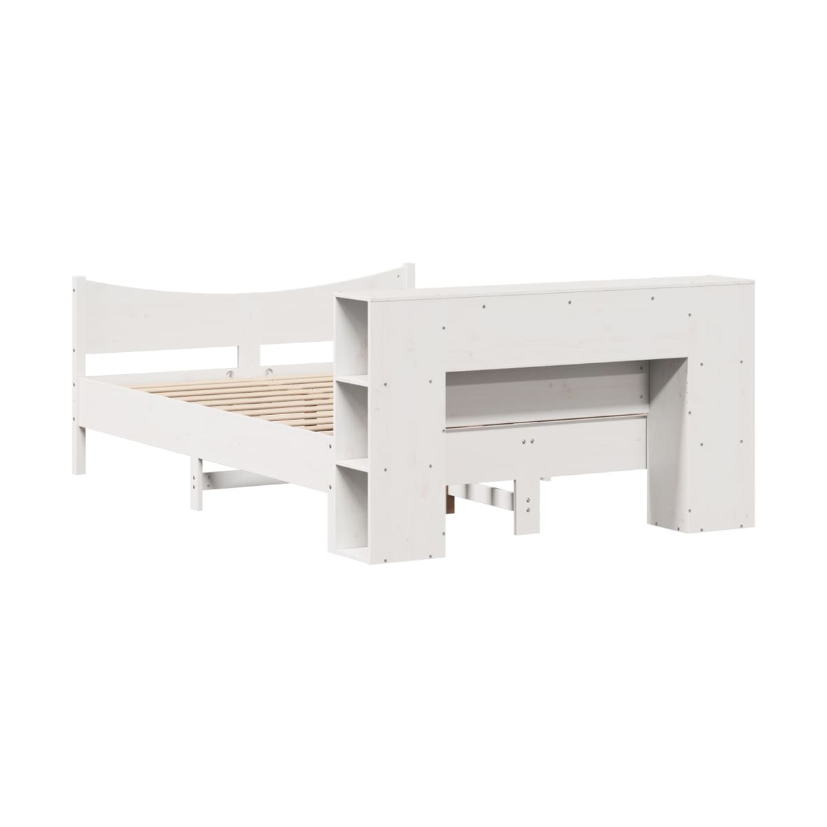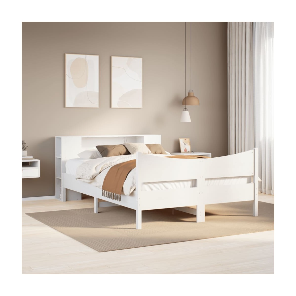 ¡Mete la directa hasta un dormitorio moderno con esta estructura de cama de madera! Es un aporte práctico y decorativo para tu decoración. Madera maciza de pino: La cama está hecha de madera maciza de pino, un bonito material natural. La madera de pino tiene vetas rectas y los nudos dan al material su distintivo aspecto rústico.Amplio espacio de almacenamiento: Este elegante cabecero cuenta con siete prácticos compartimentos, que ofrecen un amplio espacio de almacenamiento para mantener todos tus objetos esenciales nocturnos al alcance de la mano.Ahorro de espacio: Este cabecero es una opción de ahorro de espacio que puede sustituir la necesidad de una mesilla de noche, ayudando a maximizar el espacio de tu dormitorio, y haciéndolo ideal para espacios pequeños o limitados.Listones robustos: Los listones de madera contrachapada proporcionan una buena distribución del peso, lo que garantiza que el colchón se mantenga en tu sitio con cada giro y vuelta del cuerpo mientras duermes.Cabecero y estribo de cama funcionales: El cabecero y el estribo de cama mantienen el colchón en su lugar. Además, la cabecera te brinda un excelente soporte para la espalda mientras estás sentado leyendo o mirando la televisión. Información útil:El colchón no está incluido con la cama. Disponemos de una variada selección de colchones. Puedes echar un vistazo a nuestra tienda para buscar el colchón correspondiente.