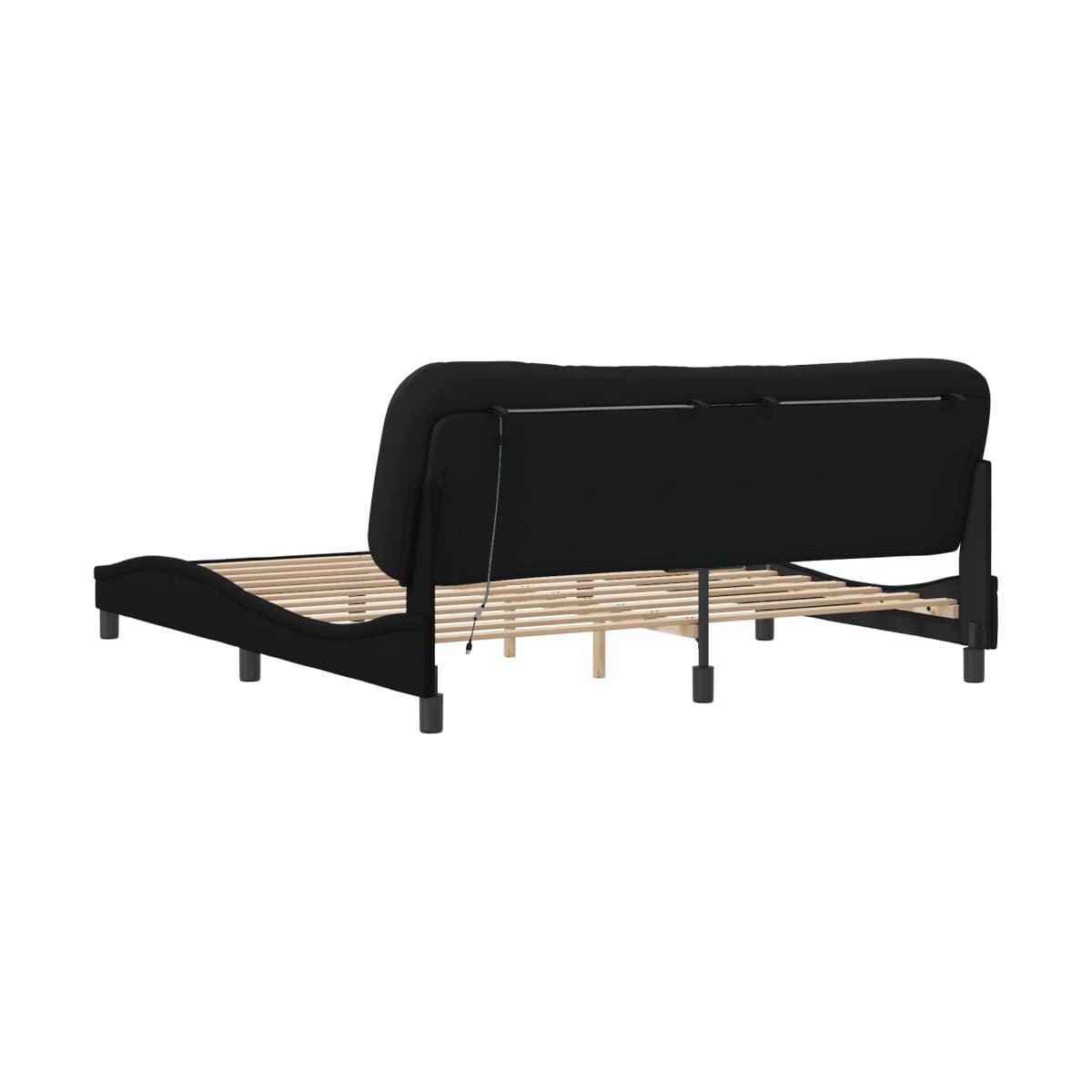 ¡Consigue tener un sueño reparador con esta estructura de cama con luces LED! Es un aporte acogedor para cualquier dormitorio. Tejido duradero: El tejido tiene un aspecto sencillo y limpio sin dejar de ser transpirable, agradable a la piel y duradero.Listones robustos: Los listones de madera contrachapada proporcionan una buena distribución del peso, lo que garantiza que el colchón se mantenga en tu sitio con cada giro y vuelta del cuerpo mientras duermes.Excelente soporte: El cabecero acolchado está relleno de fibra PP para una comodidad ultrasuave y óptima, lo que te brinda un excelente soporte para la espalda mientras estás sentado en la cama para leer o ver la televisión.Tira de LED de colores: Alegra la oscuridad con luces LED de colores. Los cierres de gancho y bucle de la parte posterior del cojín del cabecero se pueden utilizar para fijar las luces LED.Diseño lateral ondulado: El look ondulado de la estructura de la cama es elegante y sofisticado, agregando un toque moderno y elegante a tu decoración, convirtiéndolo en el foco de atención de tu dormitorio. Información útil:El colchón no está incluido con la cama. Disponemos de una variada selección de colchones. Puedes echar un vistazo a nuestra tienda para buscar el colchón correspondiente.El producto tiene un conector USB que necesita una fuente de alimentación USB certificada de 5 V (no incluida).