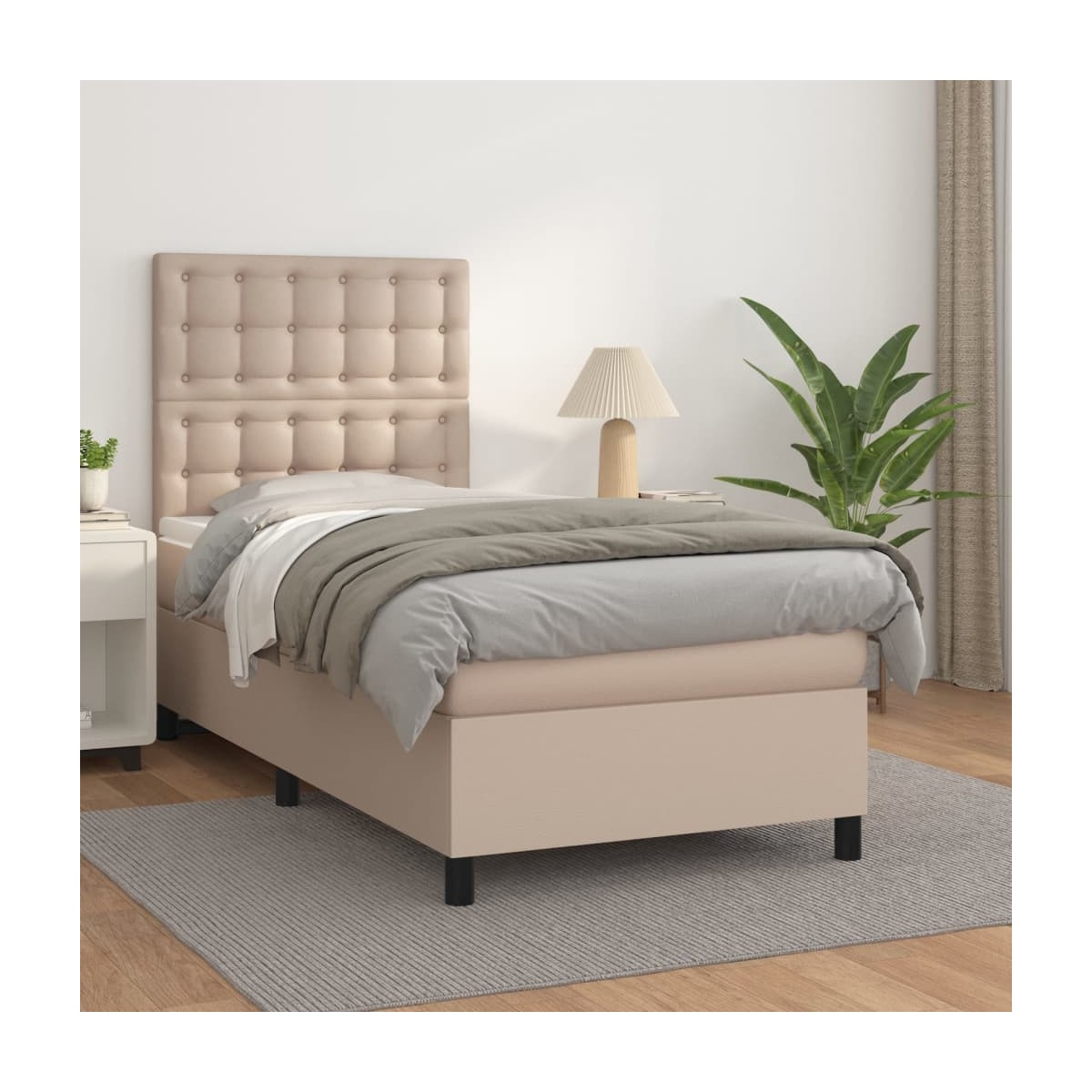 Utiliza esta cama de muelles para disfrutar de un sueño reparador. Te ofrece la máxima relajación y un sueño placentero. Material duradero: El cuero sintético de primera calidad es un material muy duradero. Es resistente a las manchas, por lo que es fácil de limpiar con un paño húmedo. Además, la superficie lisa da un aspecto lujoso y la belleza del cuero auténtico.Cabecero práctico: El cabecero de la cama es ajustable en altura según tus preferencias. El cabecero de la cama te proporciona un excelente apoyo para la espalda mientras estás sentado en la cama para leer o ver la televisión.Colchón de muelles ensacados: El muelle ensacado individual incorporado es conocido por su altísima calidad, al tiempo que garantiza un alto nivel de durabilidad y adaptabilidad. Puede absorber eficazmente el ruido y los golpes causados por los lanzamientos y los giros.Soporte de dureza media: El colchón de la cama proporciona perfectamente una mayor estabilidad y el nivel justo de firmeza sin sacrificar la comodidad. Por tanto, es ideal para quienes duermen de espaldas o boca abajo.Protector de colchón respetuoso con la piel: El protector de colchón tiene una funda de tejido resistente y respetuoso con la piel, que lo hace suave y confortable. Nota:Por razones de higiene, el colchón no puede devolverse si se ha quitado o abierto el embalaje.Cada producto viene con un manual de montaje en la caja para facilitar el montaje.