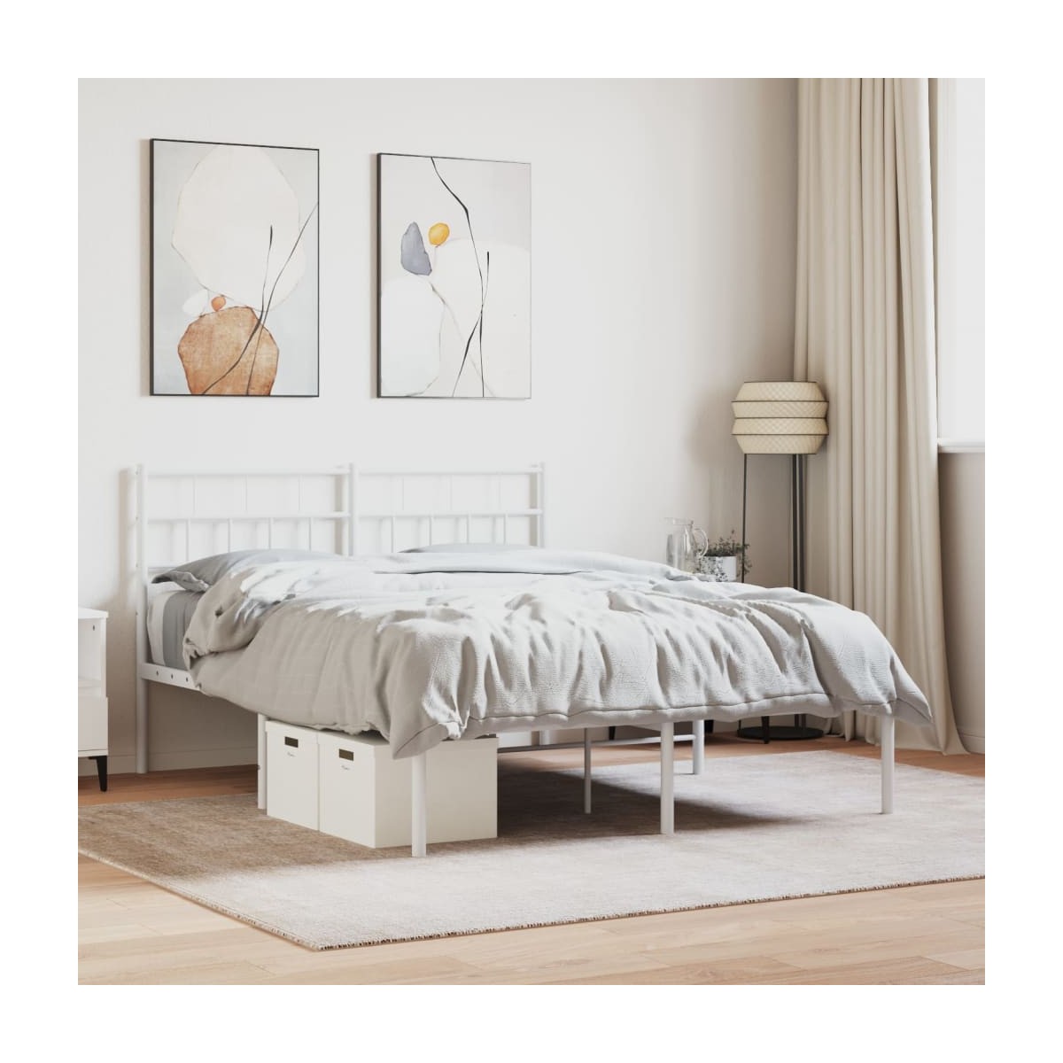 Si estás buscando una estructura de cama robusta para el dormitorio, ¡esta clásica estructura de cama de metal con un diseño elegante y atemporal es la elección perfecta para ti! Construcción robusta de metal: La estructura de la cama está hecha de acero con recubrimiento en polvo. El acero es un material muy duro y fuerte, que ofrece una solidez y estabilidad excepcionales.Listones y patas de metal: La cama de metal se completa con listones de metal y patas centrales para brindarle a tu colchón el apoyo y la transpirabilidad que tanto necesita.Espacio de almacenamiento adicional: Para mayor comodidad, la cama de invitados también dispone de un espacio debajo para guardar las cajas de almacenaje y que no se vean.Excelente apoyo: El cabecero de la cama te ofrece un excelente soporte para la espalda mientras estás sentado en la cama leyendo o mirando televisión. Información útil:El colchón no está incluido con la cama. Disponemos de una variada selección de colchones. Puedes echar un vistazo a nuestra tienda para buscar el colchón correspondiente.