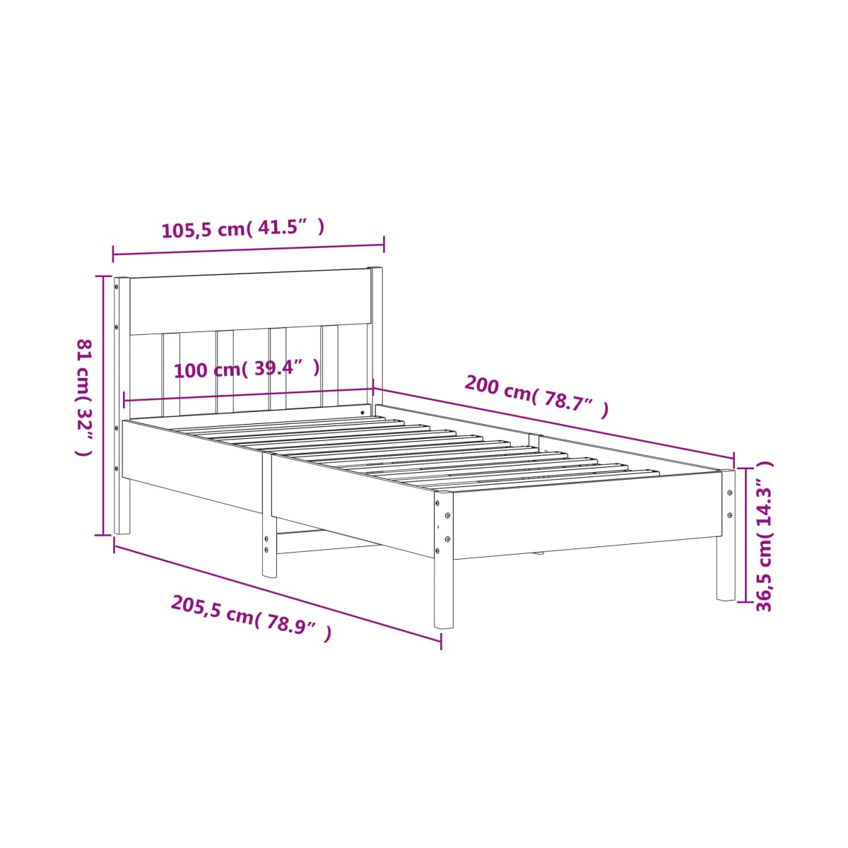 - Dimensiones de colchón compatible: 100 x 200 cm (ancho x largo) (colchón no incluido)