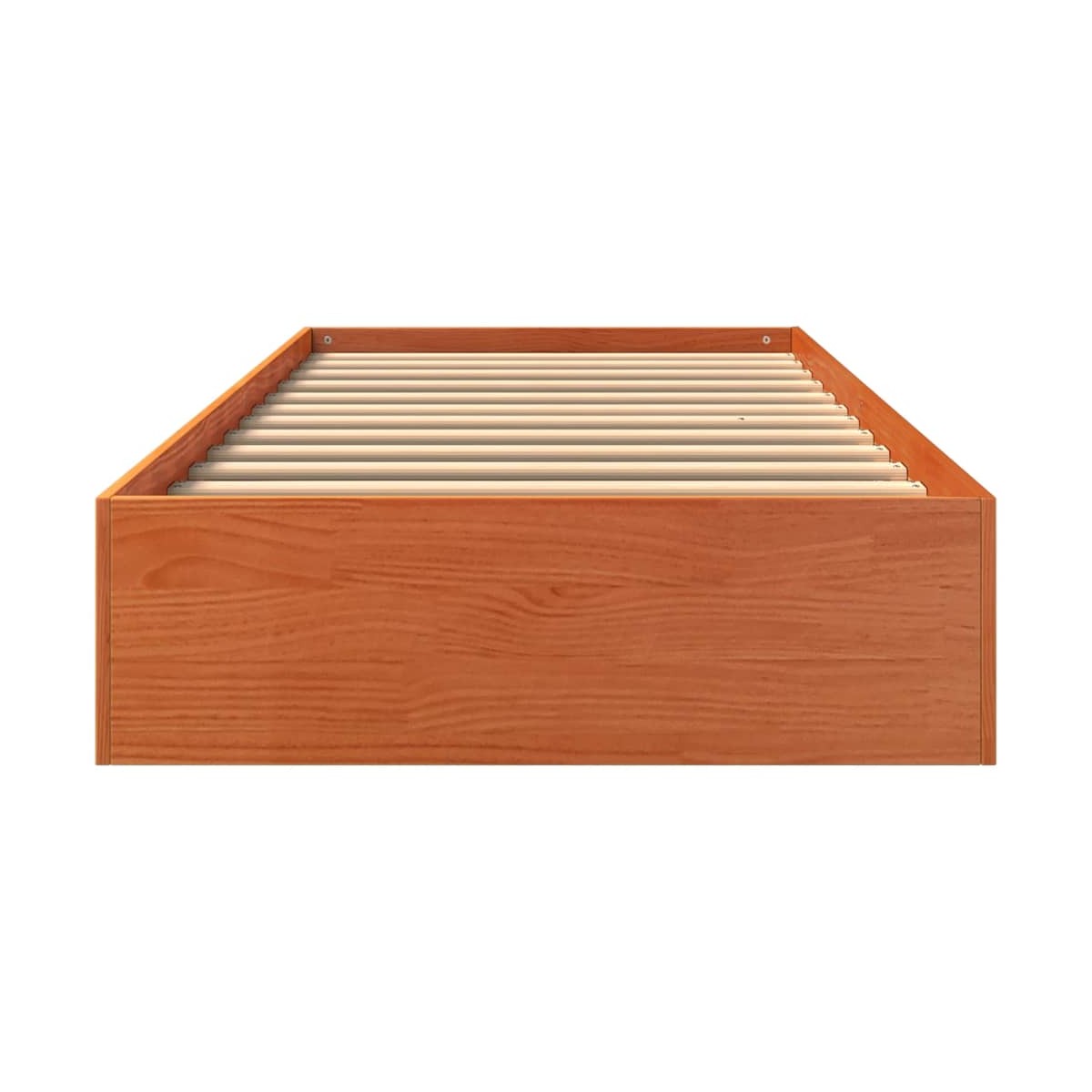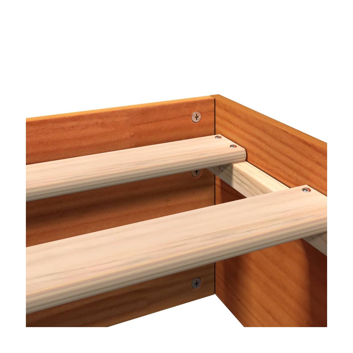 ¡Disfruta de una buena noche de sueño en esta estructura de cama de madera! Es un aporte práctico y decorativo para la casa. Madera de pino maciza: La madera de pino maciza es un bonito material natural. La madera de pino tiene vetas rectas, y los nudos dan al material su distintivo aspecto rústico.Estructura de cama estable: La estructura de madera garantiza su solidez y estabilidad.Listones robustos: Los listones de madera contrachapada proporcionan una buena distribución del peso, lo que garantiza que el colchón se mantenga en tu sitio con cada giro y vuelta del cuerpo mientras duermes. Información útil:El colchón no está incluido con la cama. Disponemos de una variada selección de colchones. Puedes echar un vistazo a nuestra tienda para buscar el colchón correspondiente.