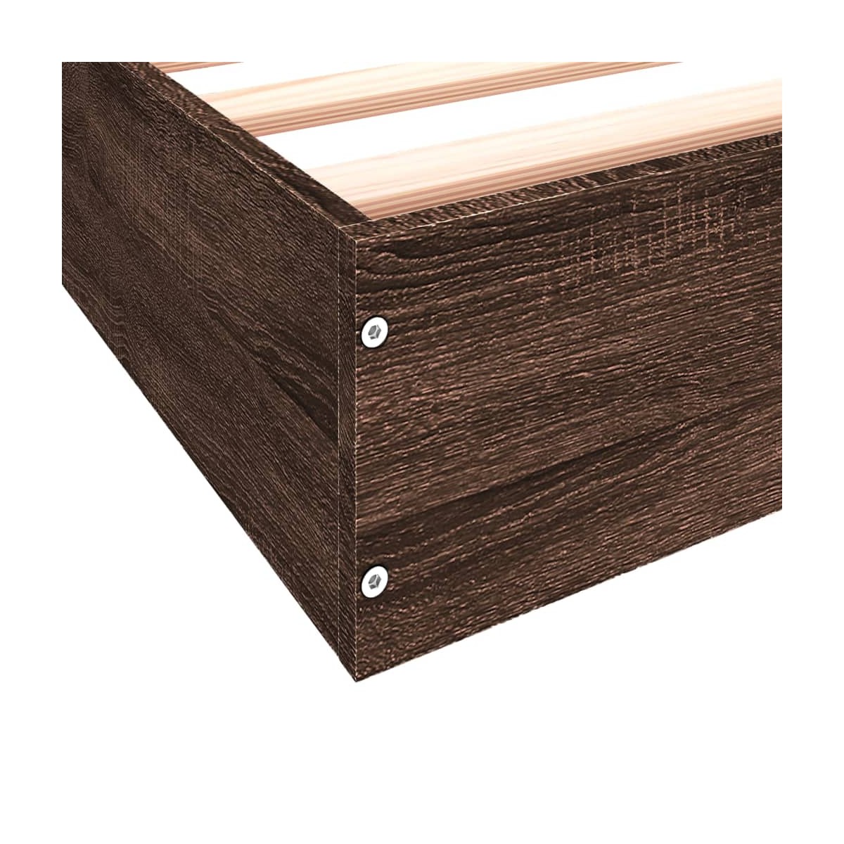 Consigue un sueño más reparador con esta estructura de cama. Es un aporte acogedor para cualquier dormitorio. Material duradero: La madera de ingeniería tiene una calidad excepcional, con una superficie lisa y también cuenta con fuerza, estabilidad y resistencia a la humedad. Listones robustos: Los listones de madera contrachapada proporcionan una buena distribución del peso, lo que garantiza que el colchón se mantenga en tu sitio con cada giro y vuelta del cuerpo mientras duermes. Diseño moderno: ¡Da un estilo moderno a tu casa! El moderno diseño posee líneas limpias, aspectos minimalistas y luz natural como parte del estilo de interiorismo. Información útil:El colchón no está incluido con la cama. Disponemos de una variada selección de colchones. Puedes echar un vistazo a nuestra tienda para buscar el colchón correspondiente.