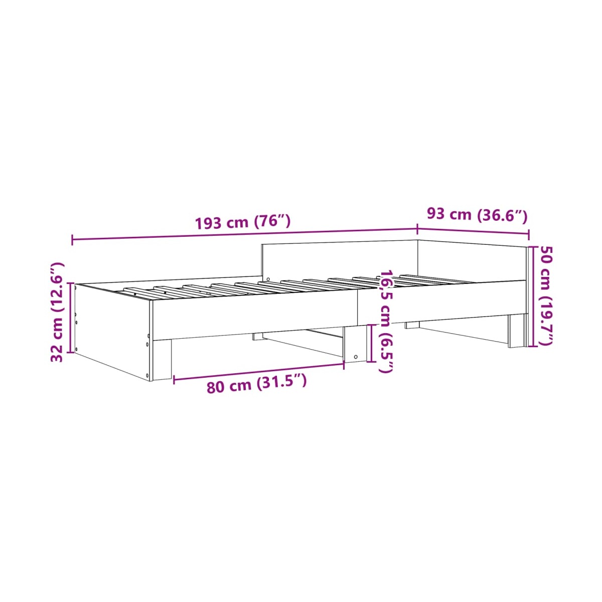 - Dimensiones totales: 193 x 93 x 50 cm (largo x ancho x alto)
