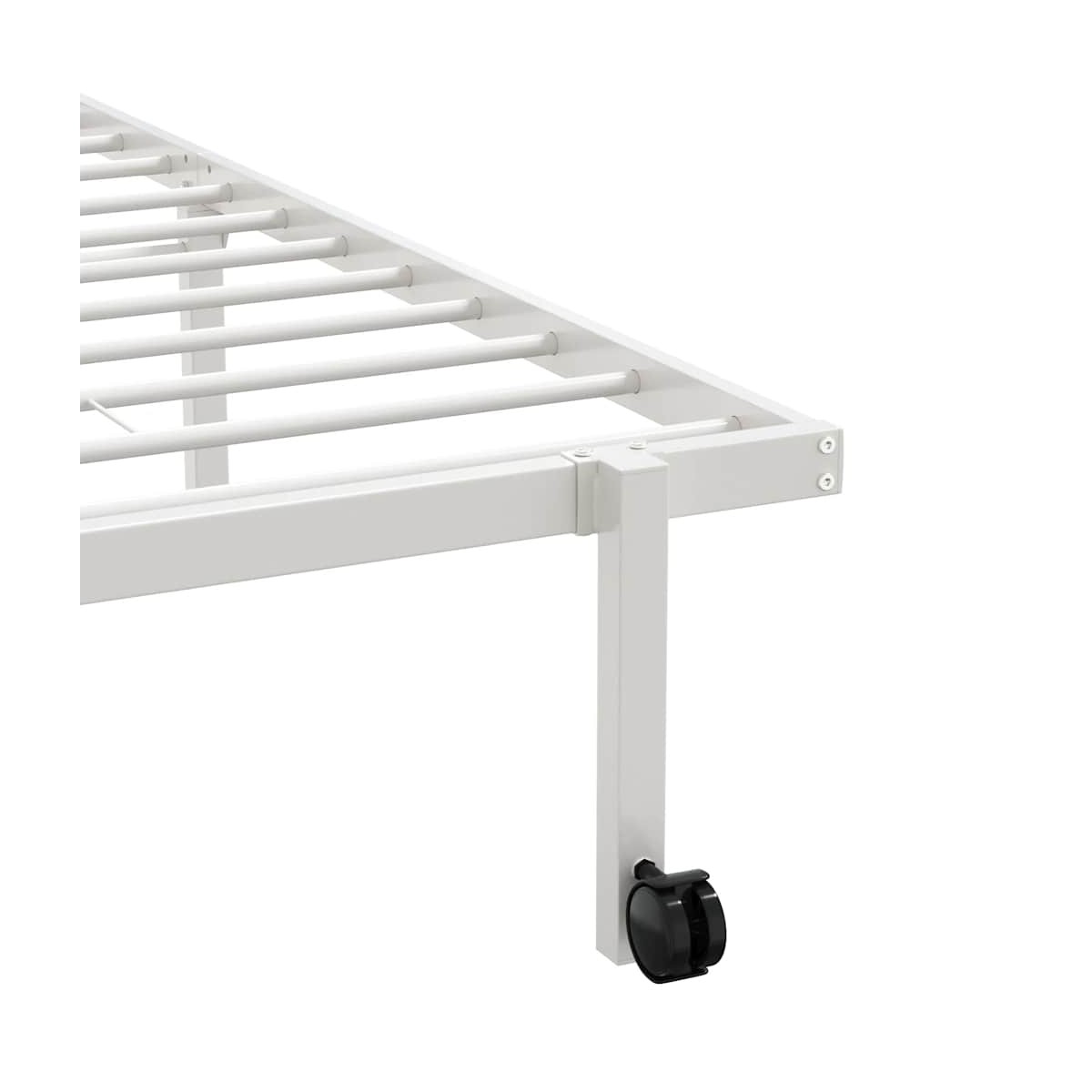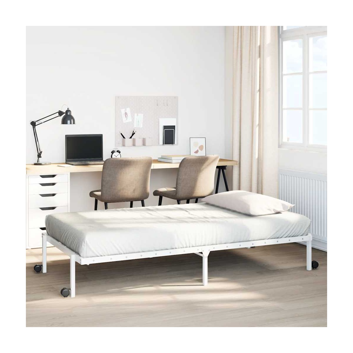 Si está buscando un marco de cama resistente para su dormitorio, ¡este marco de cama con su diseño elegante y atemporal es la elección perfecta para usted! Construcción robusta: El marco de la cama está construido en acero, un material muy duradero y resistente que proporciona una robustez y estabilidad excepcionales.Somier y patas de láminas de metal: El somier de metal está equipado con un somier de láminas y un entrepié que proporcionan a tu colchón el soporte y la transpirabilidad necesarios.Diseño plegable: gracias a su diseño plegable, este marco de cama se puede plegar fácilmente y almacenar en espacios compactos cuando no está en uso, lo que lo hace ideal para habitaciones pequeñas o áreas estrechas.Fácil de mover: este marco de cama está equipado con cuatro ruedas, lo que permite un movimiento sin esfuerzo a cualquier ubicación de su elección.Espacio de almacenamiento adicional: para su comodidad, la cama ofrece espacio de almacenamiento adicional debajo de la cama para mantener sus cajas de almacenamiento fuera de la vista. Información útil:El colchón no está incluido con la cama. Ofrecemos una variada selección de colchones. Puedes echar un vistazo a nuestra tienda para buscar el colchón correspondiente.