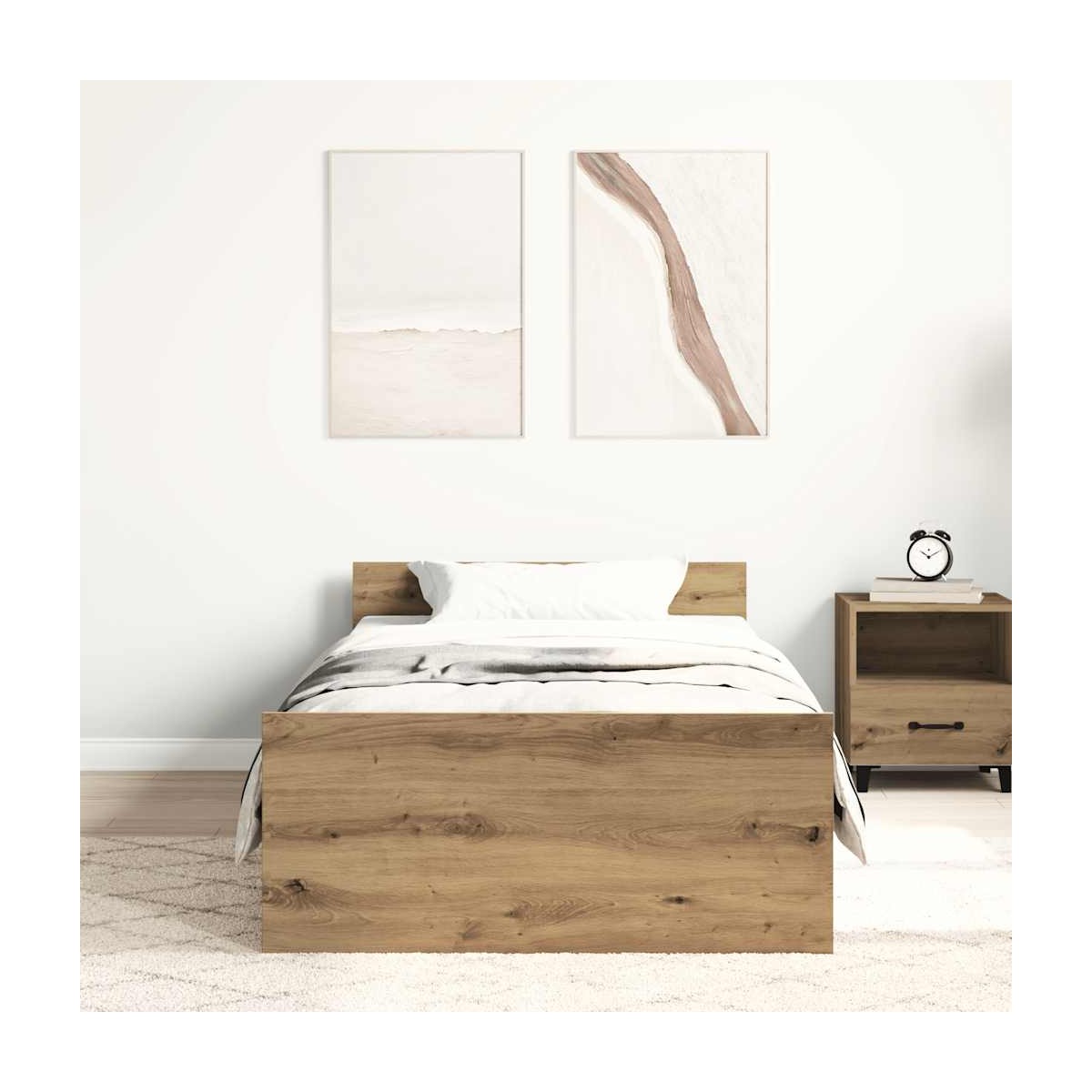 Consigue un sueño más reparador con esta estructura de cama. Es un aporte acogedor para cualquier dormitorio. Material duradero: La madera de ingeniería tiene una calidad excepcional, con una superficie lisa y también cuenta con fuerza, estabilidad y resistencia a la humedad. Cabecero y estribo de cama funcionales: El cabecero y el estribo de cama mantienen el colchón en su lugar. Además, la cabecera te brinda un excelente soporte para la espalda mientras estás sentado leyendo o mirando la televisión. Listones robustos: Los listones de madera contrachapada proporcionan una buena distribución del peso, lo que garantiza que el colchón se mantenga en tu sitio con cada giro y vuelta del cuerpo mientras duermes. Información útil:El colchón no está incluido con la cama. Ofrecemos una variada selección de colchones. Puedes echar un vistazo a nuestra tienda para buscar el colchón correspondiente.