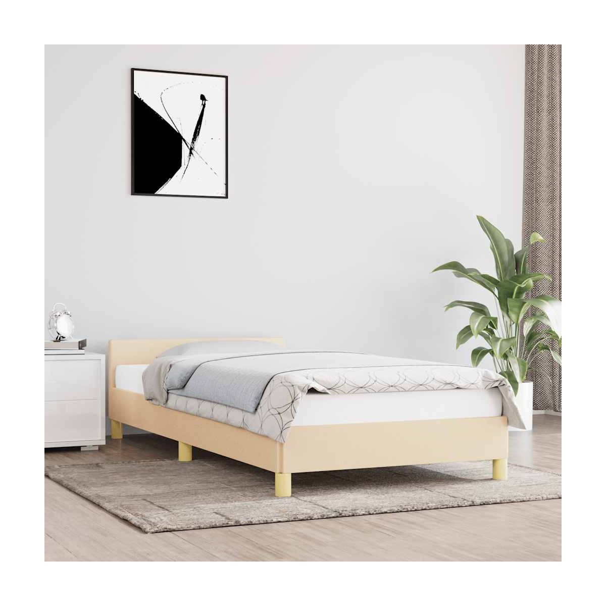 ¡Consigue un sueño más reparador con esta estructura de cama con cabecero! Es un aporte acogedor para cualquier dormitorio. Material de primera calidad: La tela posee un aspecto sencillo y limpio, y es transpirable y duradera.Patas de apoyo: La cama se apoya en patas robustas, que garantizan su estabilidad, seguridad y firmeza.Listones robustos: Los listones de madera contrachapada proporcionan una buena distribución del peso, lo que garantiza que el colchón se mantenga en tu sitio con cada giro y vuelta del cuerpo mientras duermes. Nota:La entrega incluye solo una estructura de cama. El colchón no está incluido. Puedes echar un vistazo en nuestra tienda para buscar colchones a juego.Cada producto viene con un manual de montaje en la caja para facilitar el montaje. Información útil:Para ahorrar espacio, algunas piezas o cojines se guardan dentro de los muebles: revise los compartimentos con cierre o debajo de la funda del asiento para ver si hay componentes ocultos.