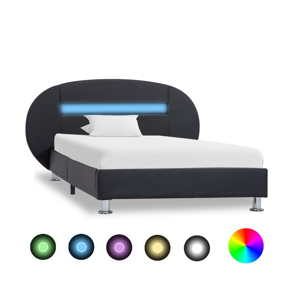 Añade al instante un impresionante toque moderno a tu dormitorio con nuestra elegante estructura de cama. Esta estructura de cama con un cabecero cómodo se convertirá en el punto focal de tu dormitorio. Distinguida por un diseño discreto pero elegante, la cama añade un toque de encanto elegante a la decoración de tu dormitorio. Hecha de madera maciza de pino, esta estructura de cama es muy robusta y duradera. Además, tapizada en cuero sintético duradero, la cama desprende un look acogedor. Gracias al mullido cabecero, podrás ver la televisión o leer libros cómodamente. La cama tapizada es adecuada para un colchón de 90 x 200 cm. Además, puedes ajustar cómodamente la potencia, el brillo y los diferentes colores intermitentes de la tira de luces LED con el mando a distancia de 24 teclas incluido, totalmente funcional, para crear un espectáculo de luces impresionante. Ten en cuenta que la entrega incluye una estructura de cama únicamente; el colchón no está incluido. La cama es fácil de montar. Puedes echar un vistazo a nuestra tienda para buscar el correspondiente colchón. Nota: El producto tiene un conector USB, pero la fuente de alimentación USB de 5V certificada no está incluida.