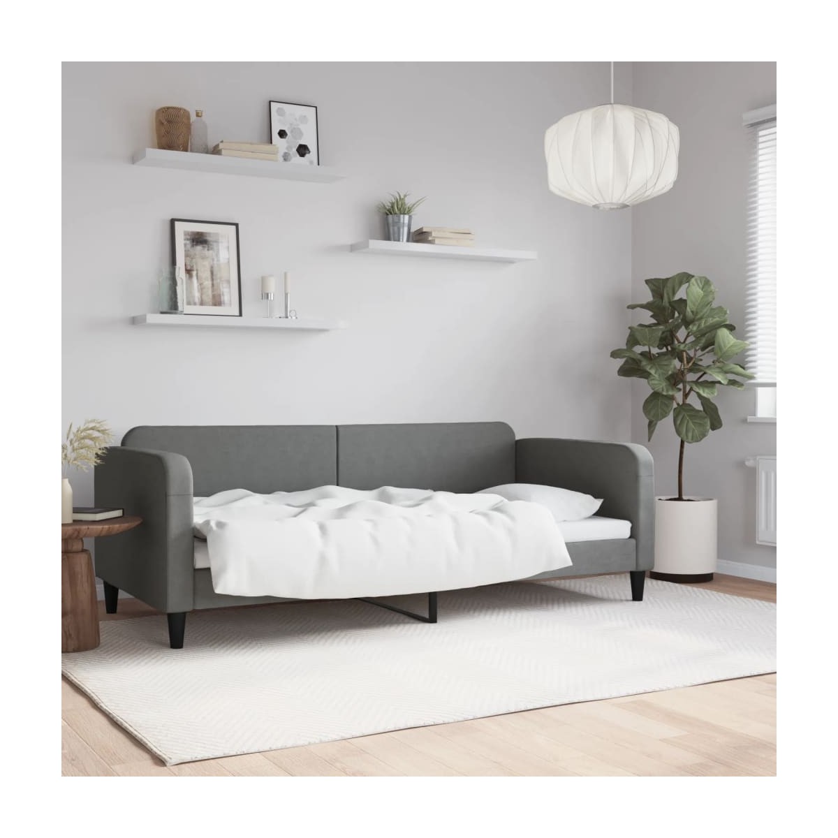 Este sofá cama 2 en 1, que sirve tanto de sofá como de cama, es un complemento práctico y llamativo para el salón o el dormitorio. Sofá cama versátil: El sofá cama puede utilizarse como sofá durante el día o como cama por la noche, para tener una solución rápida para alojar a invitados que pasen la noche.Experiencia confortable: El sofá cama está hecho de tela. La tela posee un aspecto sencillo y limpio, además de ser transpirable y duradera. Asimismo, el respaldo y los reposabrazos de la cama de invitados están acolchados con espuma para mejorar la comodidad.Estructura robusta y estable: La estructura principal del sofá cama está hecha de metal y madera maciza, por lo que es muy resistente y duradero. Estos listones de madera contrachapada permiten una mejor circulación del aire con el fin de mantener el colchón fresco durante más tiempo, además de mejorar la capacidad de peso y garantizar la estabilidad.Diseño moderno: ¡El sofá cama tiene un diseño moderno con líneas nítidas, un aspecto minimalista, así como luz natural, y añadirá un estilo moderno a la casa! Información útil:El colchón no está incluido con la cama. Disponemos de una variada selección de colchones. Puedes echar un vistazo a nuestra tienda para buscar el colchón correspondiente.