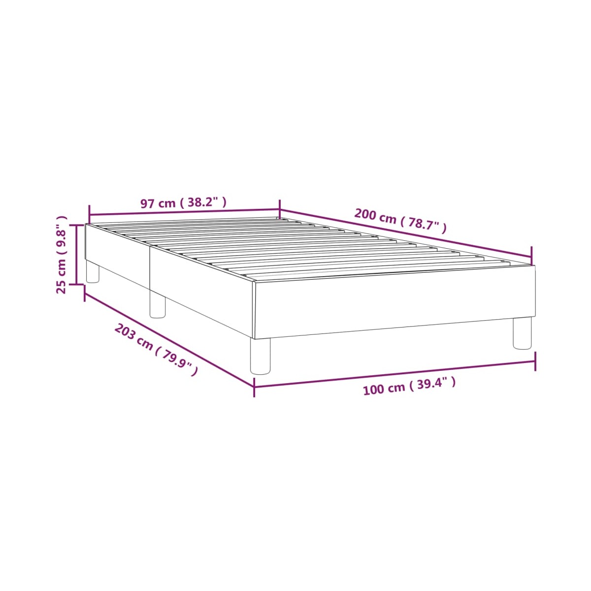 - Dimensiones totales: 203 x 100 x 25 cm (largo x ancho x alto)