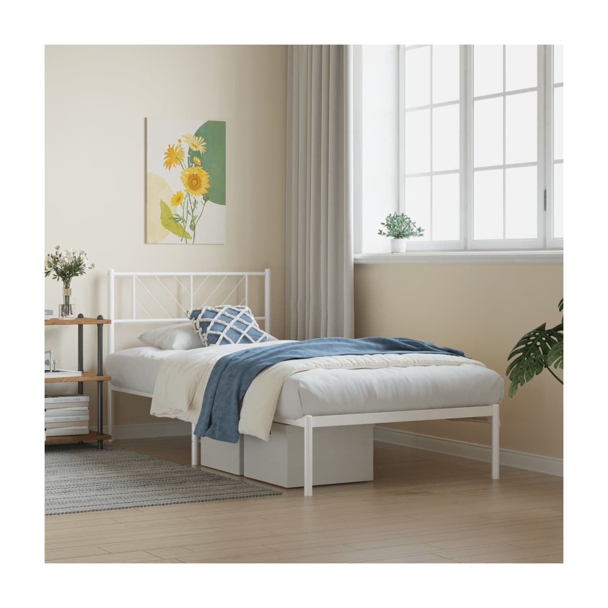 Si estás buscando una estructura de cama robusta para el dormitorio, ¡esta clásica estructura de cama de metal con un diseño elegante y atemporal es la elección perfecta para ti! Construcción robusta de metal: La estructura de la cama está hecha de acero con recubrimiento en polvo. El acero es un material muy duro y fuerte, que ofrece una solidez y estabilidad excepcionales.Listones y patas de metal: La cama de metal se completa con listones de metal y patas centrales para brindarle a tu colchón el apoyo y la transpirabilidad que tanto necesita.Espacio de almacenamiento adicional: Para mayor comodidad, la cama de invitados también dispone de un espacio debajo para guardar las cajas de almacenaje y que no se vean.Excelente apoyo: El cabecero de la cama te ofrece un excelente soporte para la espalda mientras estás sentado en la cama leyendo o mirando televisión. Información útil:El colchón no está incluido con la cama. Disponemos de una variada selección de colchones. Puedes echar un vistazo a nuestra tienda para buscar el colchón correspondiente.
