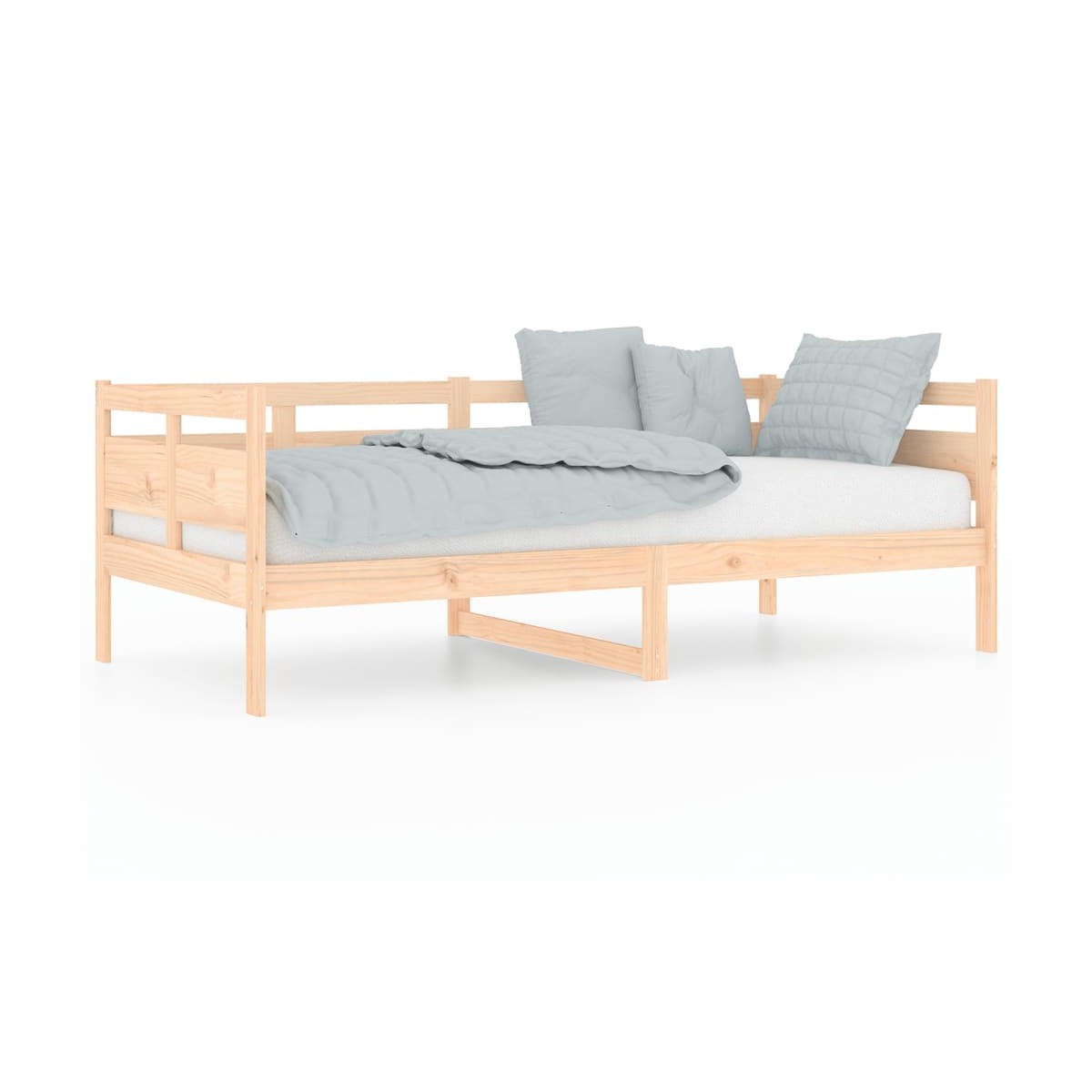 Este sofá cama de madera será perfecto para acomodar a invitados inesperados durante la noche mientras brinda un cómodo espacio para sentarse durante el día. Material de primera calidad: La madera maciza de pino es un bonito material natural. La madera de pino tiene vetas rectas, y los nudos dan al material su distintivo aspecto rústico.Estructura robusta y estable: La estructura de madera del sofá cama garantiza su resistencia y estabilidad. Dormitorio versátil: La cama de huéspedes es ideal para el dormitorio, la sala de estar, etc. Esta cama de día de madera multifuncional puede utilizarse como sofá durante el día, o como cama por la noche para ofrecer una solución rápida para alojar a los invitados que pasen la noche. Nota:Ten en cuenta que la entrega incluye únicamente una estructura de cama. El colchón no está incluido. Puedes echar un vistazo a nuestra tienda para buscar el correspondiente colchón.