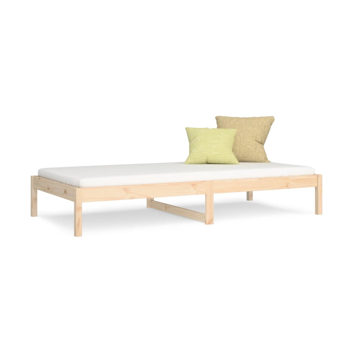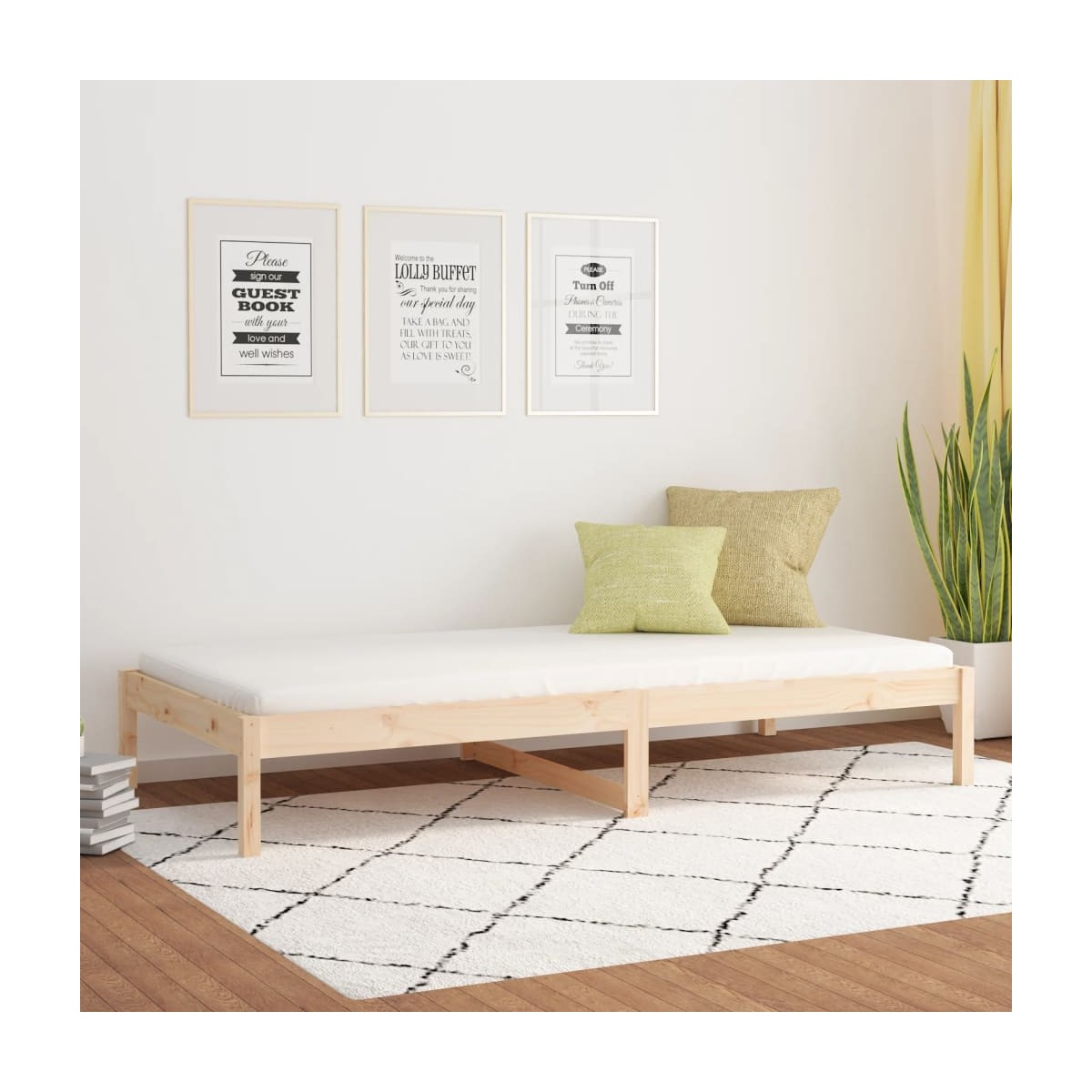 Esta versátil sofá cama puede utilizarse no solo como cama en el dormitorio, sino que también encaja perfectamente como sofá en el salón. Se adaptará perfectamente a tus diferentes necesidades, proporcionándote mucho espacio para dormir o descansar. Madera de pino maciza: La madera de pino maciza es un bonito material natural. La madera de pino tiene vetas rectas, y los nudos dan al material su distintivo aspecto rústico.Estructura de cama robusta: La estructura de madera garantiza su solidez y estabilidad. Los listones proporcionan una buena distribución del peso, lo que garantiza que el colchón se mantenga en su sitio con cada giro y vuelta del cuerpo mientras duermes.Espacio de almacenamiento adicional: Aprovecha el espacio bajo el sofá cama para guardar diversos objetos. Perfecto para guardar cajas para organizar tu ropa, juguetes o colchas. Nota:La entrega incluye solo una estructura de cama. El colchón no está incluido. Puedes echar un vistazo en nuestra tienda para buscar colchones a juego.Esta estructura de cama es adecuada para un colchón de 80 x 200 cm