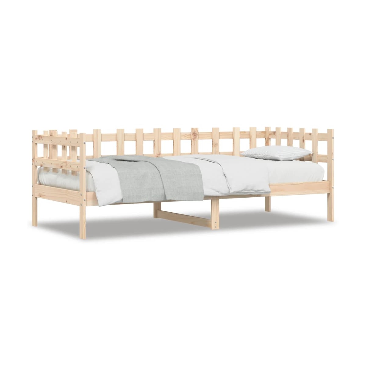 Este versátil sofá cama de madera se puede usar como cama en el dormitorio y también encaja a la perfección como sofá en el salón. Se adapta perfectamente a tus diferentes necesidades, lo que te proporciona mucho espacio para dormir y descansar. Madera maciza de pino: La madera maciza de pino es un bonito material natural. La madera de pino tiene vetas rectas, y los nudos dan al material su distintivo aspecto rústico. Esta cama para invitados está hecha de madera maciza de pino, más estable y duradera.Barras de cama de 3 lados: Esta cama tiene un diseño único en el lateral de la cama, que proporciona una sensación de seguridad y además añade un toque de estilo sofisticado a tu hogar.Diseño de listones: El somier de madera proporciona una mejor circulación del aire para mantener el colchón fresco durante más tiempo, además de mejorar la capacidad de carga de la cama y de asegurar su estabilidad.Sofá cama multiusos: Este sofá cama de madera se puede utilizar como sofá durante el día o como cama por la noche. Es una solución rápida para alojar invitados por la noche sin ocupar mucho espacio.Espacio de almacenamiento adicional: Aprovecha al máximo el espacio que hay debajo de la cama para guardar varios objetos. Ideal para guardar cajas para organizar tu ropa, juguetes o edredones. Información útil:El colchón no está incluido con la cama. Disponemos de una variada selección de colchones. Puedes echar un vistazo a nuestra tienda para buscar el colchón correspondiente.