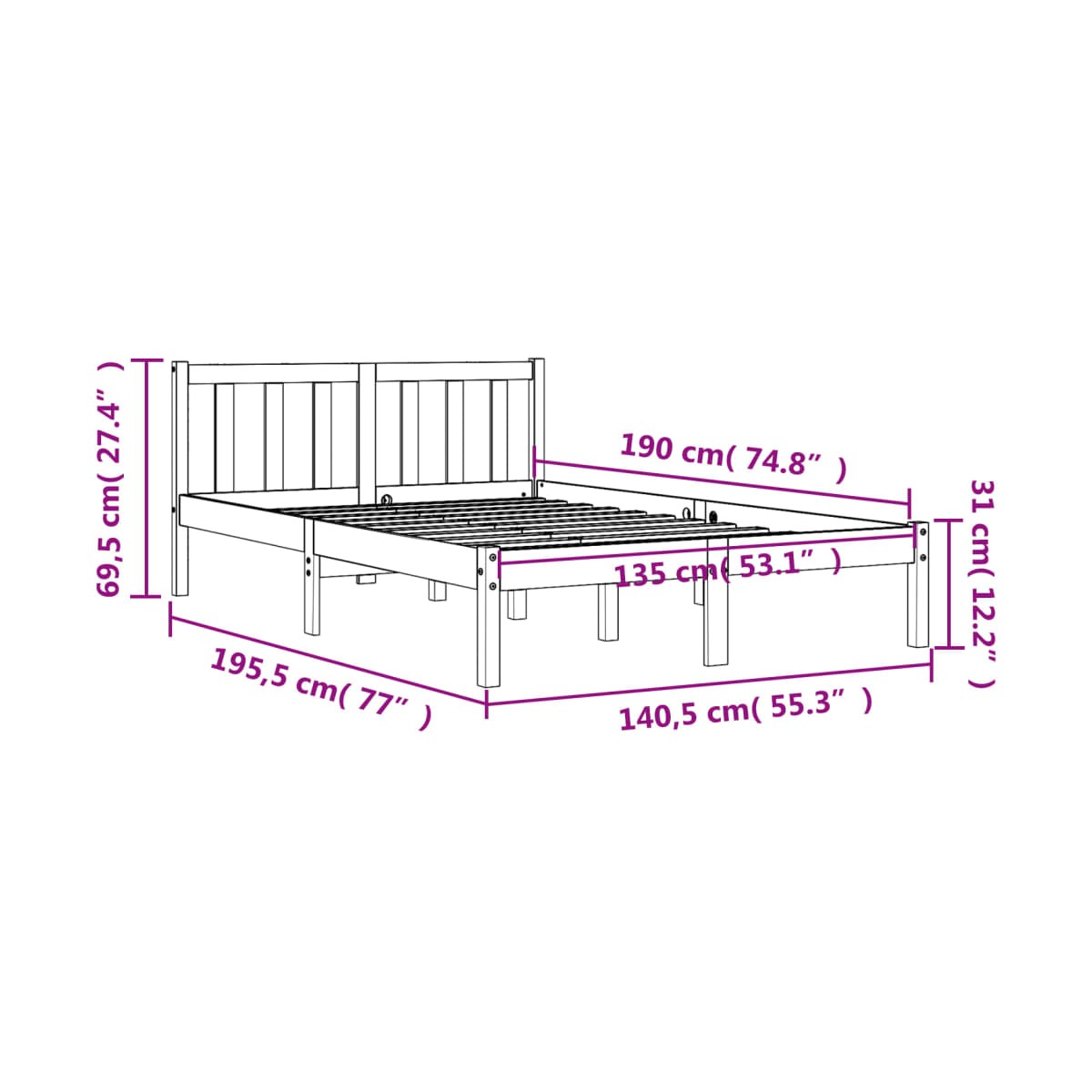 - Dimensiones totales: 195,5 x 140,5 x 69,5 cm (largo x ancho x alto)
