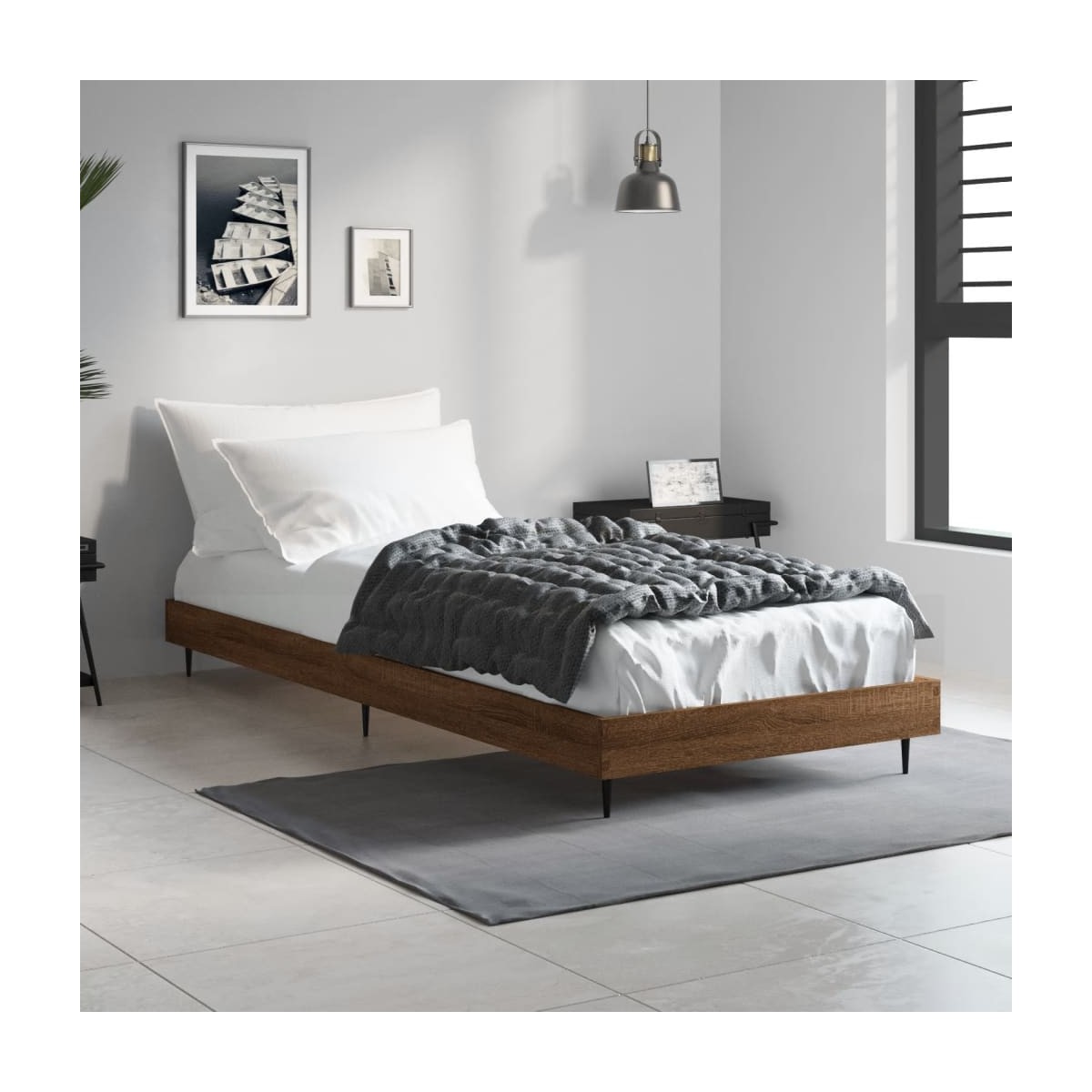 Consigue un sueño más reparador con esta estructura de cama. Es un aporte acogedor para cualquier dormitorio. Material duradero: La madera contrachapada tiene una calidad excepcional, con una superficie lisa y también cuenta con fuerza, estabilidad y resistencia a la humedad.Patas de metal: La cama se apoya en robustas patas metálicas, que garantizan su estabilidad, seguridad y firmeza.Listones robustos: Los listones de madera contrachapada proporcionan una buena distribución del peso, lo que garantiza que el colchón se mantenga en tu sitio con cada giro y vuelta del cuerpo mientras duermes. Información útil:El colchón no está incluido con la cama. Ofrecemos una variada selección de colchones. Puedes echar un vistazo a nuestra tienda para buscar el colchón correspondiente.