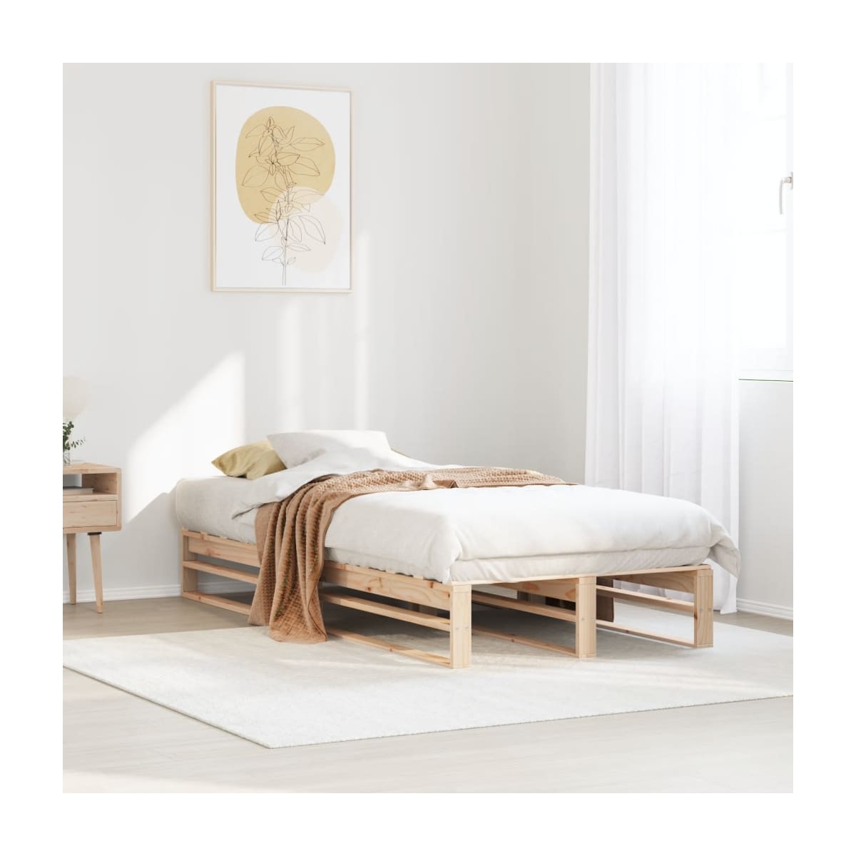 Añade un toque moderno a tu dormitorio con esta estructura de cama de madera clásico. Es un aporte práctico y decorativo para tu decoración. Estructura estable y duradera: La madera de pino maciza es conocida por su resistencia y durabilidad. Sus vetas rectas y sus característicos nudos contribuyen a su encanto rústico.Estructura robusta y estable: La estructura de madera garantiza su solidez y estabilidad.Listones robustos: Los listones de madera contrachapada proporcionan una buena distribución del peso, lo que garantiza que el colchón se mantenga en su sitio con cada giro y vuelta del cuerpo mientras duermes. Información útil:El colchón no está incluido con la cama. Disponemos de una variada selección de colchones. Puedes echar un vistazo a nuestra tienda para buscar el colchón correspondiente.