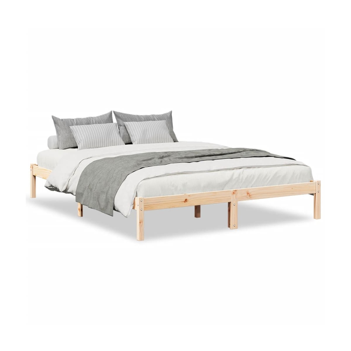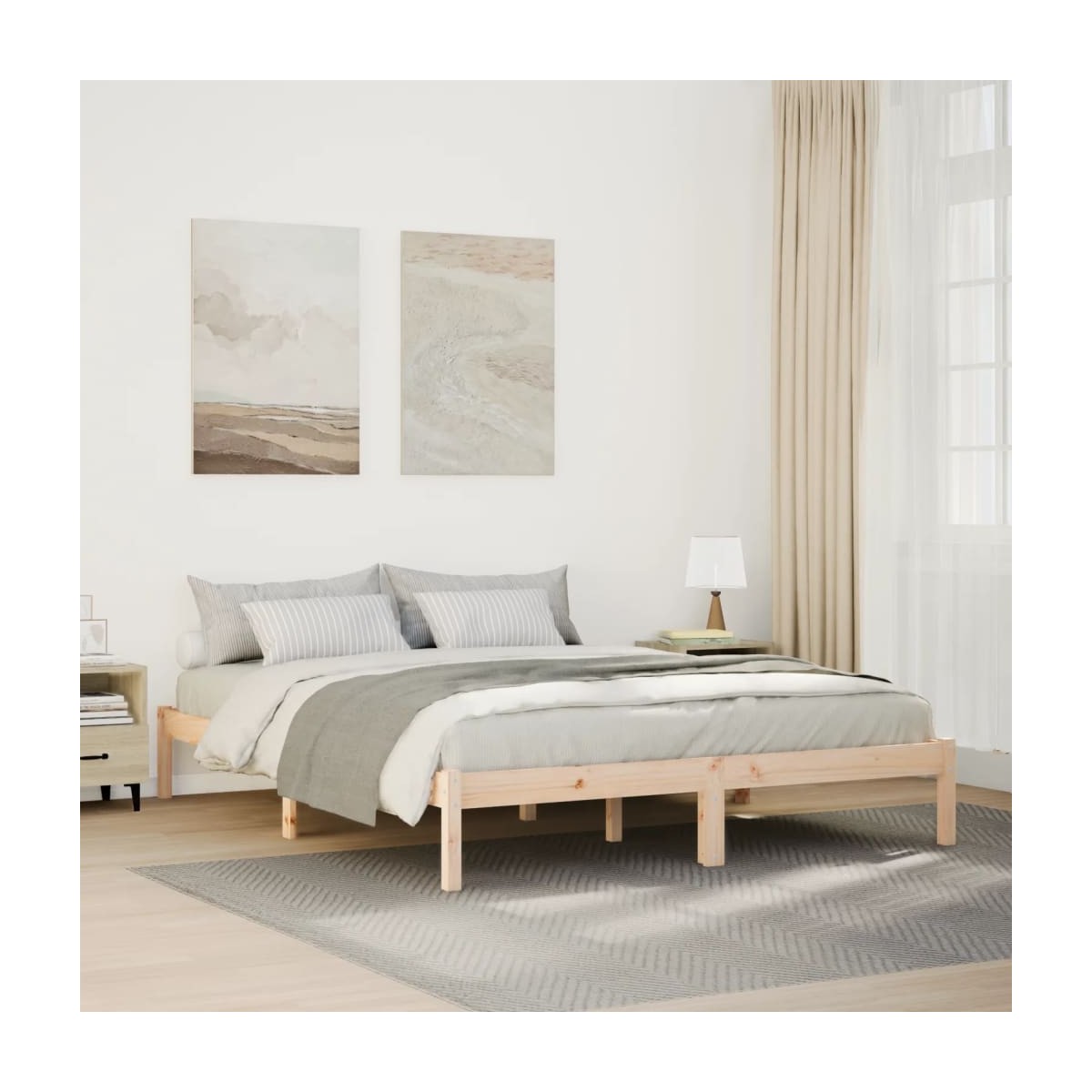 ¡Disfruta de una buena noche de sueño en esta estructura de cama de madera! Es un aporte práctico y decorativo para la casa. Material robusto y estable: La madera maciza de pino es conocida por su resistencia y durabilidad. Sus vetas rectas y sus característicos nudos contribuyen a su encanto rústico.Listones para un soporte óptimo: El somier se completa con listones para ofrecer un soporte esencial y transpirabilidad a tu colchón.Patas estables y duraderas: Esta cama de madera está sostenida por patas resistentes, lo que garantiza estabilidad, seguridad y firmeza. Información útil:El colchón no está incluido con la cama. Disponemos de una variada selección de colchones. Puedes echar un vistazo a nuestra tienda para buscar el colchón correspondiente.
