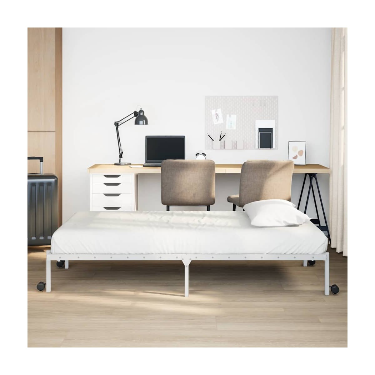 Si está buscando un marco de cama resistente para su dormitorio, ¡este marco de cama con su diseño elegante y atemporal es la elección perfecta para usted! Construcción robusta: El marco de la cama está construido en acero, un material muy duradero y resistente que proporciona una robustez y estabilidad excepcionales.Somier y patas de láminas de metal: El somier de metal está equipado con un somier de láminas y un entrepié que proporcionan a tu colchón el soporte y la transpirabilidad necesarios.Diseño plegable: gracias a su diseño plegable, este marco de cama se puede plegar fácilmente y almacenar en espacios compactos cuando no está en uso, lo que lo hace ideal para habitaciones pequeñas o áreas estrechas.Fácil de mover: este marco de cama está equipado con cuatro ruedas, lo que permite un movimiento sin esfuerzo a cualquier ubicación de su elección.Espacio de almacenamiento adicional: para su comodidad, la cama ofrece espacio de almacenamiento adicional debajo de la cama para mantener sus cajas de almacenamiento fuera de la vista. Información útil:El colchón no está incluido con la cama. Ofrecemos una variada selección de colchones. Puedes echar un vistazo a nuestra tienda para buscar el colchón correspondiente.
