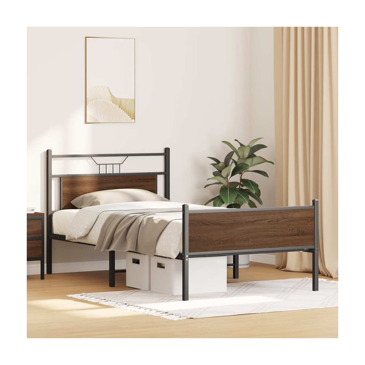 Consigue un sueño más reparador con esta estructura de cama. Es un aporte acogedor para cualquier dormitorio. Estructura estable y duradera: El acero es fuerte, estable y duradero, lo que lo convierte en la opción ideal para una amplia gama de aplicaciones, desde la fabricación de muebles hasta la construcción.Cabecero y estribo de cama funcionales: El cabecero y el estribo de cama mantienen el colchón en su lugar. Además, la cabecera te brinda un excelente soporte para la espalda mientras estás sentado leyendo o mirando la televisión.Espacio de almacenamiento adicional: para mayor comodidad, la base de la cama tiene un espacio adicional debajo para mantener sus cajas de almacenamiento fuera de la vista.Somier de láminas para un soporte óptimo: el marco de cama de metal está equipado con un somier de láminas para brindar soporte y transpirabilidad a su colchón. Información útil:El colchón no está incluido con la cama. Ofrecemos una variada selección de colchones. Puedes echar un vistazo a nuestra tienda para buscar el colchón correspondiente.