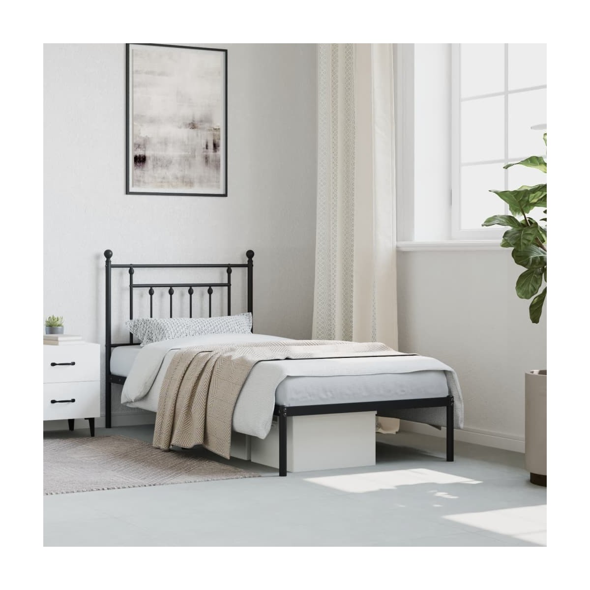 Si estás buscando una estructura de cama robusta para el dormitorio, ¡esta clásica estructura de cama con un diseño elegante y atemporal es la elección perfecta para ti! Construcción robusta de metal: La estructura de la cama está hecha de acero con recubrimiento en polvo. El acero es un material muy duro y fuerte, que ofrece una solidez y estabilidad excepcionales.Listones y patas de metal: La estructura metálica de la cama se completa con patas centrales y listones de metal con el fin de ofrecer al colchón el soporte y la transpirabilidad que tanto necesita.Espacio de almacenamiento adicional: Para mayor comodidad, la cama de invitados también dispone de un espacio debajo para guardar las cajas de almacenaje y que no se vean.Excelente apoyo: El cabecero de la cama te ofrece un excelente soporte para la espalda mientras estás sentado en la cama leyendo o mirando televisión. Información útil:El colchón no está incluido con la cama. Disponemos de una variada selección de colchones. Puedes echar un vistazo a nuestra tienda para buscar el colchón correspondiente.