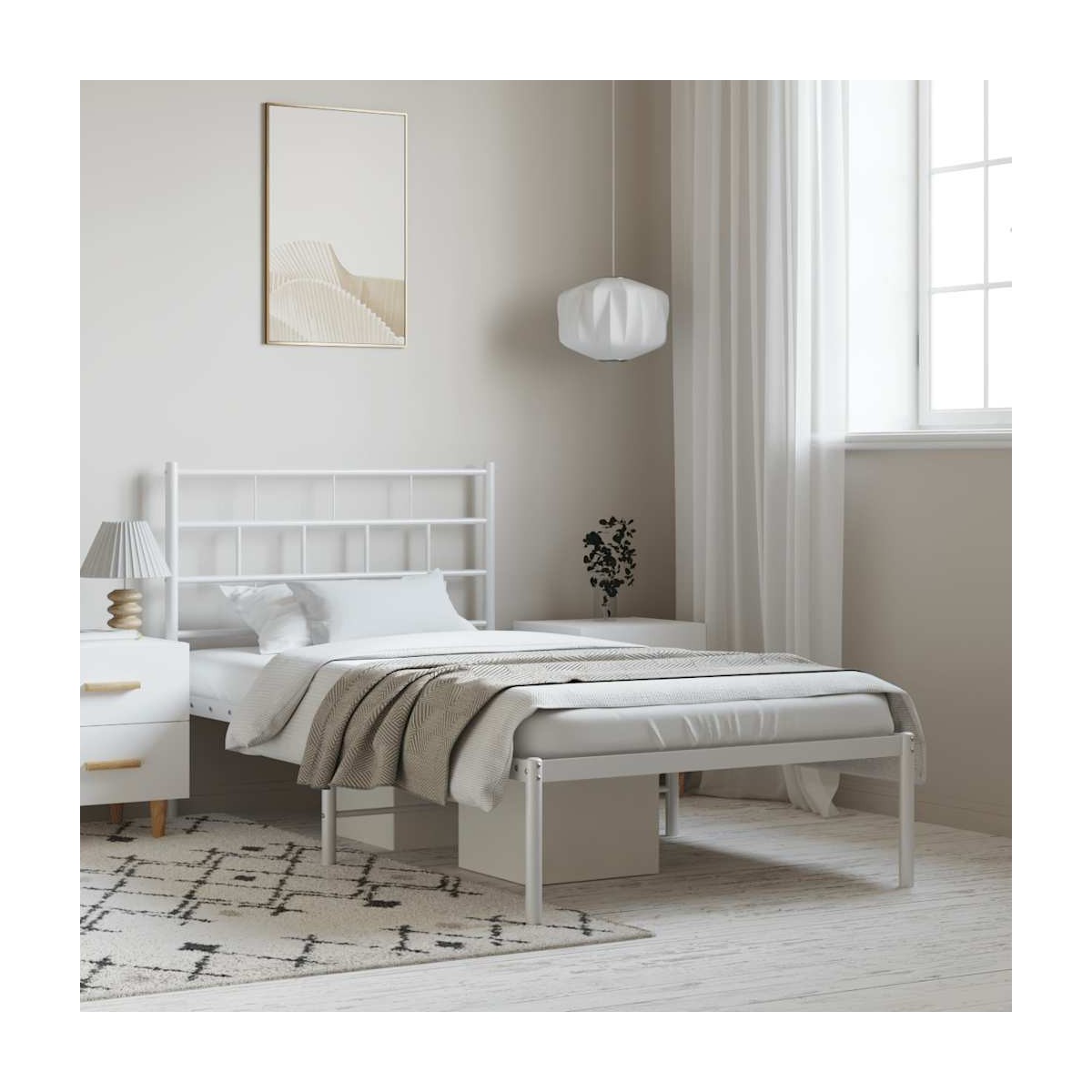 Si estás buscando una estructura de cama robusta para el dormitorio, ¡esta clásica estructura de cama de metal con un diseño elegante y atemporal es la elección perfecta para ti! Construcción robusta de metal: La estructura de la cama está hecha de acero con recubrimiento en polvo. El acero es un material muy duro y fuerte, que ofrece una solidez y estabilidad excepcionales.Listones y patas de metal: La cama de metal se completa con listones de metal y patas centrales para brindarle a tu colchón el apoyo y la transpirabilidad que tanto necesita.Espacio de almacenamiento adicional: Para mayor comodidad, la cama de invitados también dispone de un espacio debajo para guardar las cajas de almacenaje y que no se vean.Excelente apoyo: El cabecero de la cama te ofrece un excelente soporte para la espalda mientras estás sentado en la cama leyendo o mirando televisión. Información útil:El colchón no está incluido con la cama. Disponemos de una variada selección de colchones. Puedes echar un vistazo a nuestra tienda para buscar el colchón correspondiente.