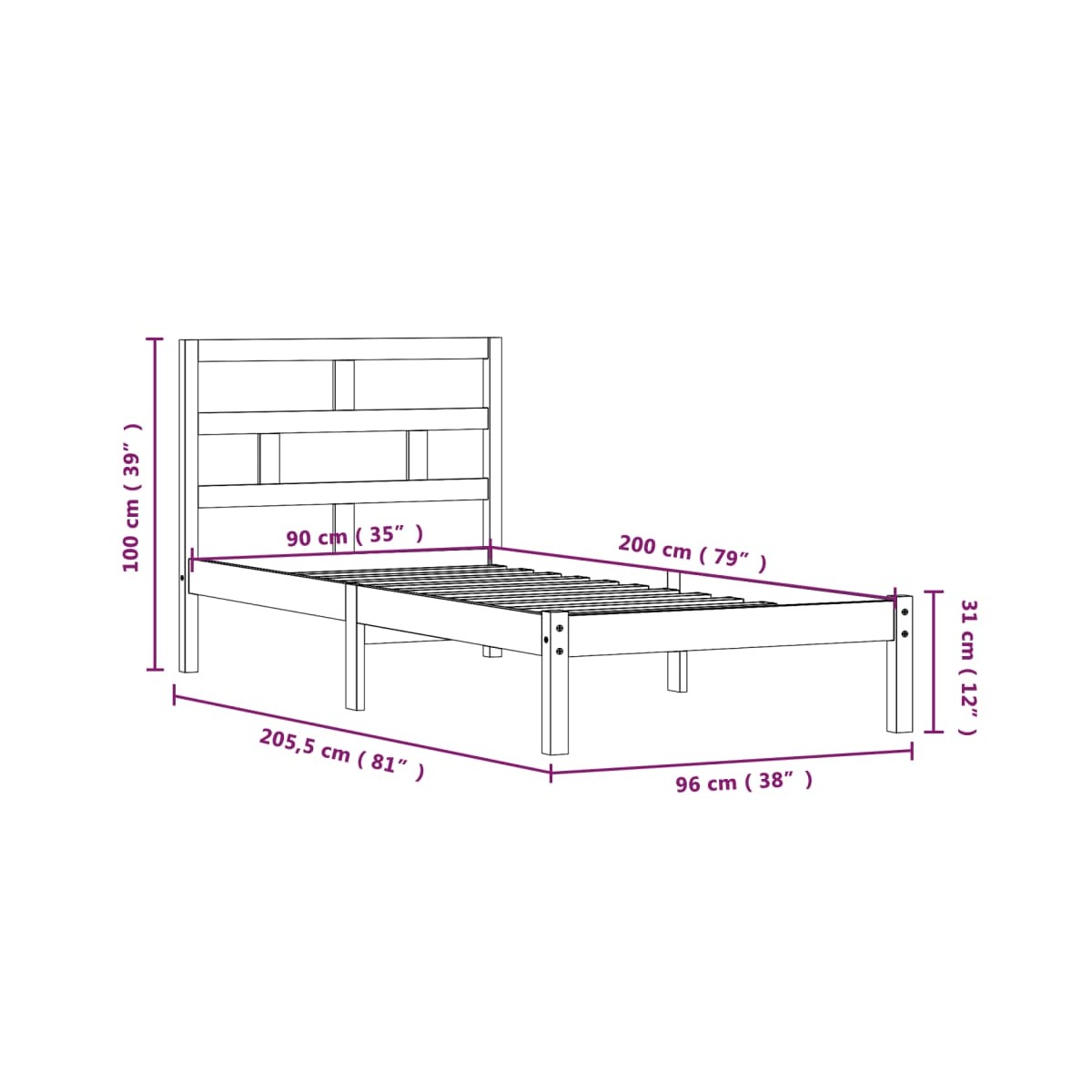 - Dimensiones del cabecero: 96 x 4 x 100 cm (ancho x profundo x alto)