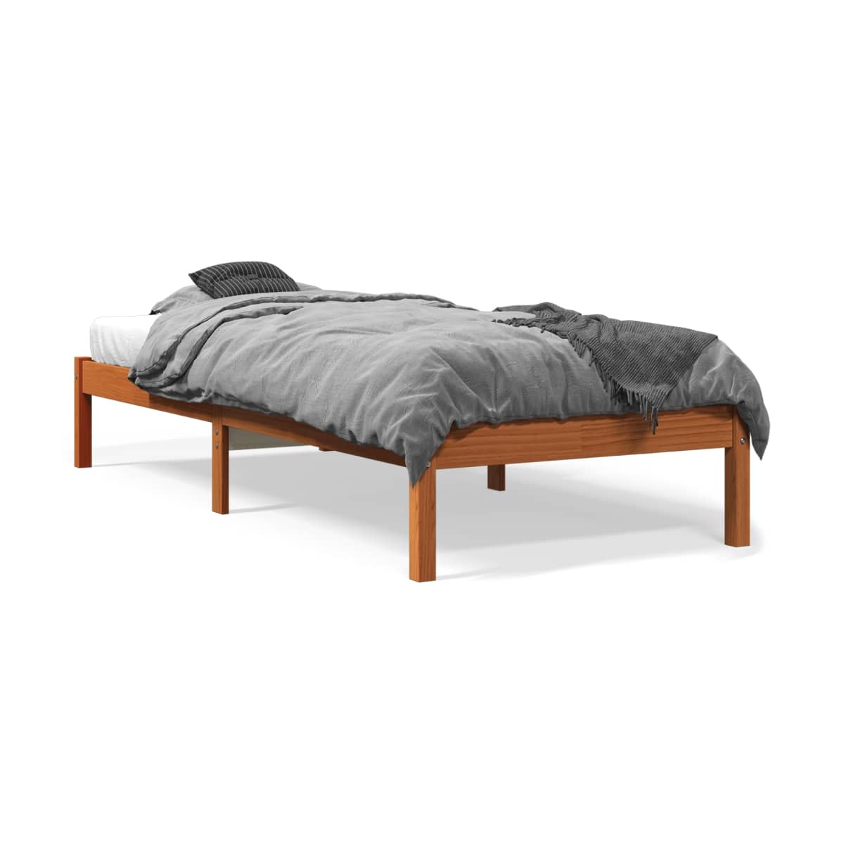 ¡Disfruta de una buena noche de sueño en esta estructura de cama de madera! Es un aporte práctico y decorativo para la casa. Madera de pino maciza: La madera de pino maciza es un bonito material natural. La madera de pino tiene vetas rectas, y los nudos dan al material su distintivo aspecto rústico.Estructura de cama estable: La estructura de madera garantiza su solidez y estabilidad.Listones robustos: Los listones de madera contrachapada proporcionan una buena distribución del peso, lo que garantiza que el colchón se mantenga en tu sitio con cada giro y vuelta del cuerpo mientras duermes. Información útil:El colchón no está incluido con la cama. Disponemos de una variada selección de colchones. Puedes echar un vistazo a nuestra tienda para buscar el colchón correspondiente.