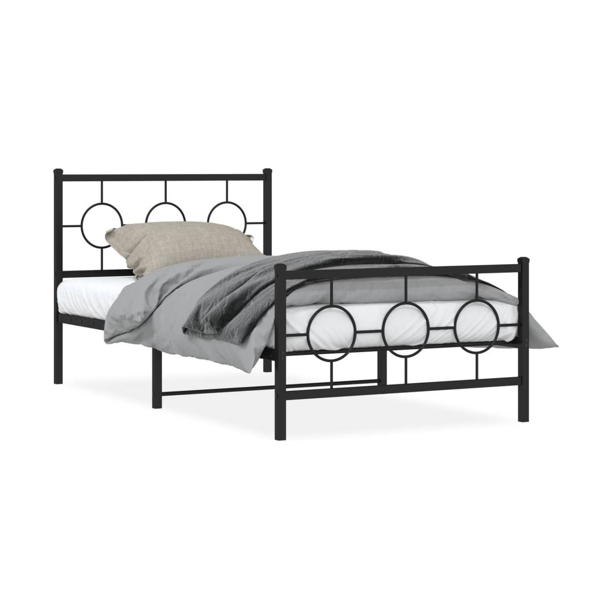 Si estás buscando una estructura de cama robusta para el dormitorio, ¡esta clásica estructura de cama con un diseño elegante y atemporal es la elección perfecta para ti! Construcción robusta de metal: La estructura de la cama está hecha de acero con recubrimiento en polvo. El acero es un material muy duro y fuerte, que ofrece una solidez y estabilidad excepcionales.Listones y patas de metal: La estructura metálica de la cama se completa con patas centrales y listones de metal con el fin de ofrecer al colchón el soporte y la transpirabilidad que tanto necesita.Espacio de almacenamiento adicional: Para mayor comodidad, la cama de invitados también dispone de un espacio debajo para guardar las cajas de almacenaje y que no se vean.Cabecero y estribo de cama funcionales: El cabecero y el estribo de cama mantienen el colchón en su lugar. Además, la cabecera te brinda un excelente soporte para la espalda mientras estás sentado leyendo o mirando la televisión. Información útil:El colchón no está incluido con la cama. Disponemos de una variada selección de colchones. Puedes echar un vistazo a nuestra tienda para buscar el colchón correspondiente.