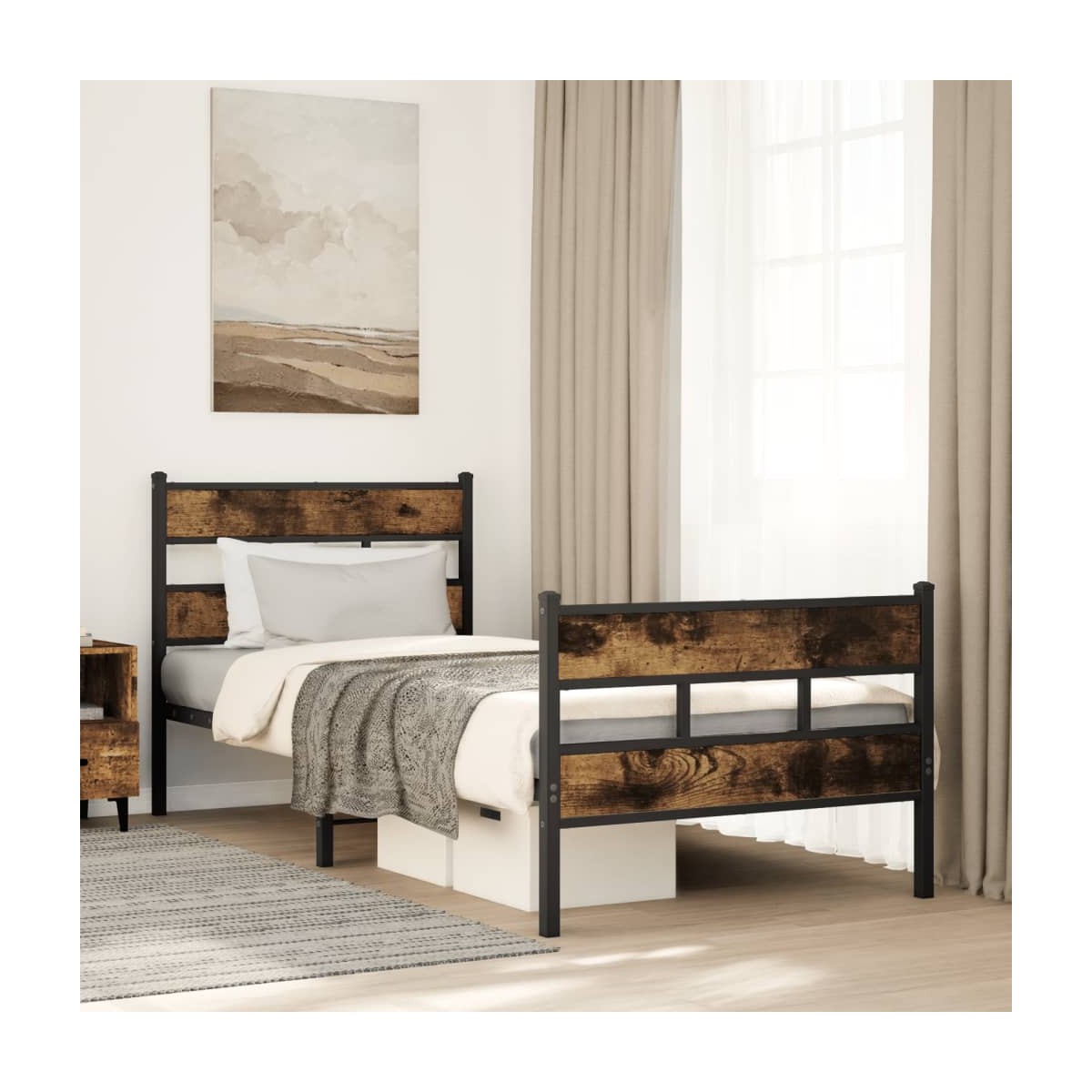 Si estás buscando una estructura de cama robusta para el dormitorio, ¡esta clásica estructura de cama con un diseño elegante y atemporal es la elección perfecta para ti! Estructura estable y duradera: El hierro es fuerte, estable y duradero, lo que lo convierte en la opción ideal para una amplia gama de usos, desde la fabricación de muebles hasta la construcción.Cabecero y estribo de cama funcionales: El cabecero y el estribo de cama mantienen el colchón en su lugar. Además, la cabecera te brinda un excelente soporte para la espalda mientras estás sentado leyendo o mirando la televisión.Espacio de almacenamiento adicional: Para mayor comodidad, la cama de invitados también dispone de un espacio debajo para guardar las cajas de almacenaje y que no se vean.Somier de láminas para un soporte óptimo: La estructura de cama está equipada con un somier de láminas para el apoyo y la transpirabilidad del colchón. Información útil:El colchón no está incluido con la cama. Disponemos de una variada selección de colchones. Puedes echar un vistazo a nuestra tienda para buscar el colchón correspondiente.