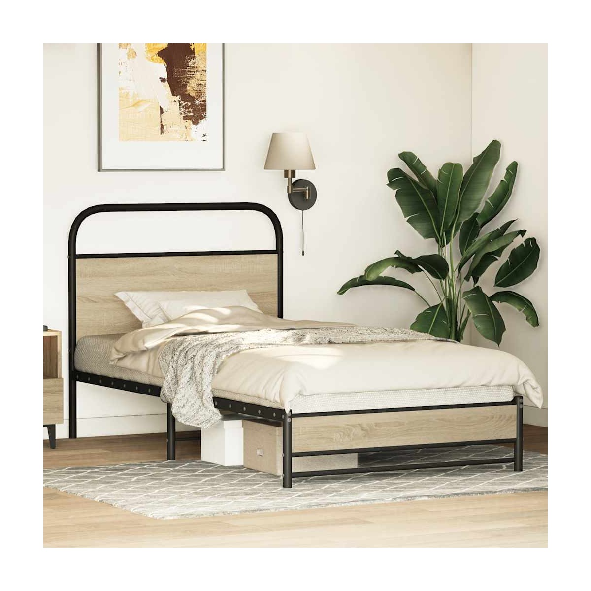 Si estás buscando una estructura de cama robusta para el dormitorio, ¡esta clásica estructura de cama con un diseño elegante y atemporal es la elección perfecta para ti! Construcción robusta de metal: La estructura de la cama está hecha de acero. El acero es un material muy duro y fuerte, que ofrece una solidez y estabilidad excepcionales.Patas estables y duraderas: Esta cama está sostenida por patas resistentes, lo que garantiza estabilidad, seguridad y firmeza.Cabecero versátil: Esta estructura de cama viene con un cabecero que proporciona un excelente soporte para la espalda cuando te sientas en la cama para leer o ver la televisión, a la vez que sirve como elemento decorativo.Somier de láminas para un soporte óptimo: La estructura de cama está equipada con un somier de láminas para el apoyo y la transpirabilidad del colchón. Información útil:El colchón no está incluido con la cama. Ofrecemos una variedad de colchones. Puede visitar nuestra tienda para encontrar el colchón que mejor se adapte a sus necesidades.