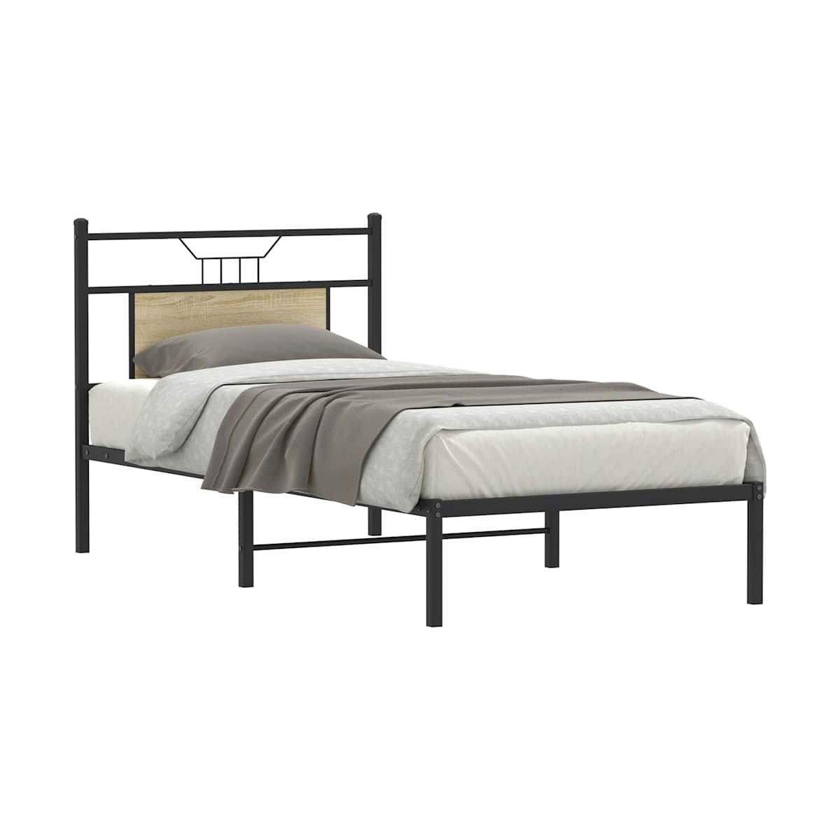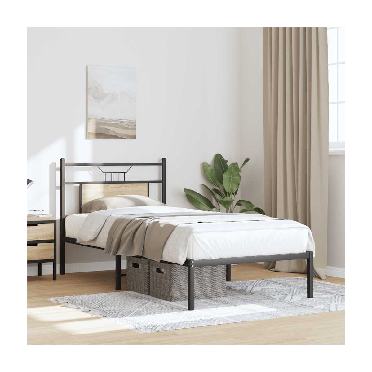 Consigue un sueño más reparador con esta estructura de cama. Es un aporte acogedor para cualquier dormitorio. Estructura estable y duradera: El acero es fuerte, estable y duradero, lo que lo convierte en la opción ideal para una amplia gama de aplicaciones, desde la fabricación de muebles hasta la construcción.Cabecero versátil: Este somier viene con un cabecero que proporciona un excelente soporte para la espalda cuando te sientas en la cama para leer o ver la televisión, a la vez que sirve como elemento decorativo.Espacio de almacenamiento adicional: para mayor comodidad, la base de la cama tiene un espacio adicional debajo para mantener sus cajas de almacenamiento fuera de la vista.Somier de láminas para un soporte óptimo: el marco de cama de metal está equipado con un somier de láminas para brindar soporte y transpirabilidad a su colchón. Información útil:El colchón no está incluido con la cama. Ofrecemos una variada selección de colchones. Puedes echar un vistazo a nuestra tienda para buscar el colchón correspondiente.