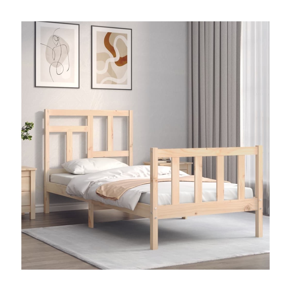 ¡Disfruta de una buena noche de sueño en esta estructura de cama de madera! Es un aporte práctico y decorativo para la casa. Material duradero: La madera maciza de pino es un hermoso material natural. La madera de pino tiene vetas rectas, y los nudos dan al material su distintivo aspecto rústico. Hecha de madera maciza de pino, esta cama es resistente y duradera.Listones de madera contrachapada: Los listones de madera contrachapada ofrecen una buena distribución del peso, lo que garantiza el tan necesario soporte y la transpirabilidad del colchón.Cabecero y estribo de cama útiles: El cabecero y el estribo de la cama de madera mantienen el colchón en su lugar. Además, la cabecera te brinda un excelente soporte para la espalda mientras estás sentado leyendo o mirando la televisión. Información útil:El colchón no está incluido con la cama. Disponemos de una variada selección de colchones. Puedes echar un vistazo a nuestra tienda para buscar el colchón correspondiente.Algunas piezas del cabecero se empaquetan en las cajas de cartón de la estructura de la cama debido a las limitaciones de espacio.