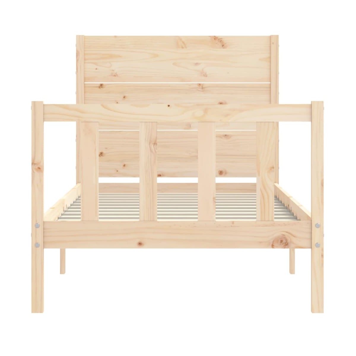 ¡Disfruta de una buena noche de sueño en esta estructura de cama de madera! Es un aporte práctico y decorativo para la casa. Material duradero: La madera maciza de pino es un hermoso material natural. La madera de pino tiene vetas rectas, y los nudos dan al material su distintivo aspecto rústico. Hecha de madera maciza de pino, esta cama es resistente y duradera.Listones de madera contrachapada: Los listones de madera contrachapada ofrecen una buena distribución del peso, lo que garantiza el tan necesario soporte y la transpirabilidad del colchón.Cabecero y estribo de cama útiles: El cabecero y el estribo de la cama de madera mantienen el colchón en su lugar. Además, la cabecera te brinda un excelente soporte para la espalda mientras estás sentado leyendo o mirando la televisión. Información útil:El colchón no está incluido con la cama. Disponemos de una variada selección de colchones. Puedes echar un vistazo a nuestra tienda para buscar el colchón correspondiente.Algunas piezas del cabecero se empaquetan en las cajas de cartón de la estructura de la cama debido a las limitaciones de espacio.