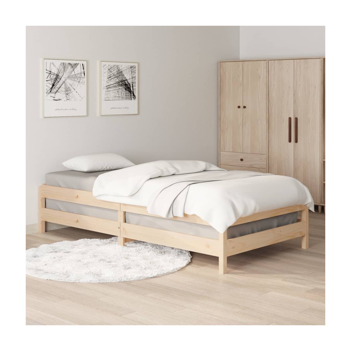¿Qué es mejor que disfrutar de una buena noche de sueño al final de un día ajetreado? Esta cama apilada de madera, sencilla pero atemporal, es la opción perfecta para relajarse después de un largo y agotador día. Madera de pino maciza: La madera de pino maciza es un bonito material natural. La madera de pino tiene vetas rectas, y los nudos dan al material su distintivo aspecto rústico.Función apilable: Este marco de cama se puede apilar uno encima del otro en un espacio limitado.Robusto somier: El somier de madera garantiza la robustez y la estabilidad. Los listones proporcionan soporte adicional para tu cama, lo que prolonga la vida útil de tu colchón.Diseño atemporal: Rectangular, sencillo y sin muchos adornos, la cama resulta especialmente apropiada en casas minimalistas. Nota:Ten en cuenta que la entrega incluye únicamente una estructura de cama. El colchón no está incluido. Puedes echar un vistazo a nuestra tienda para buscar el correspondiente colchón.