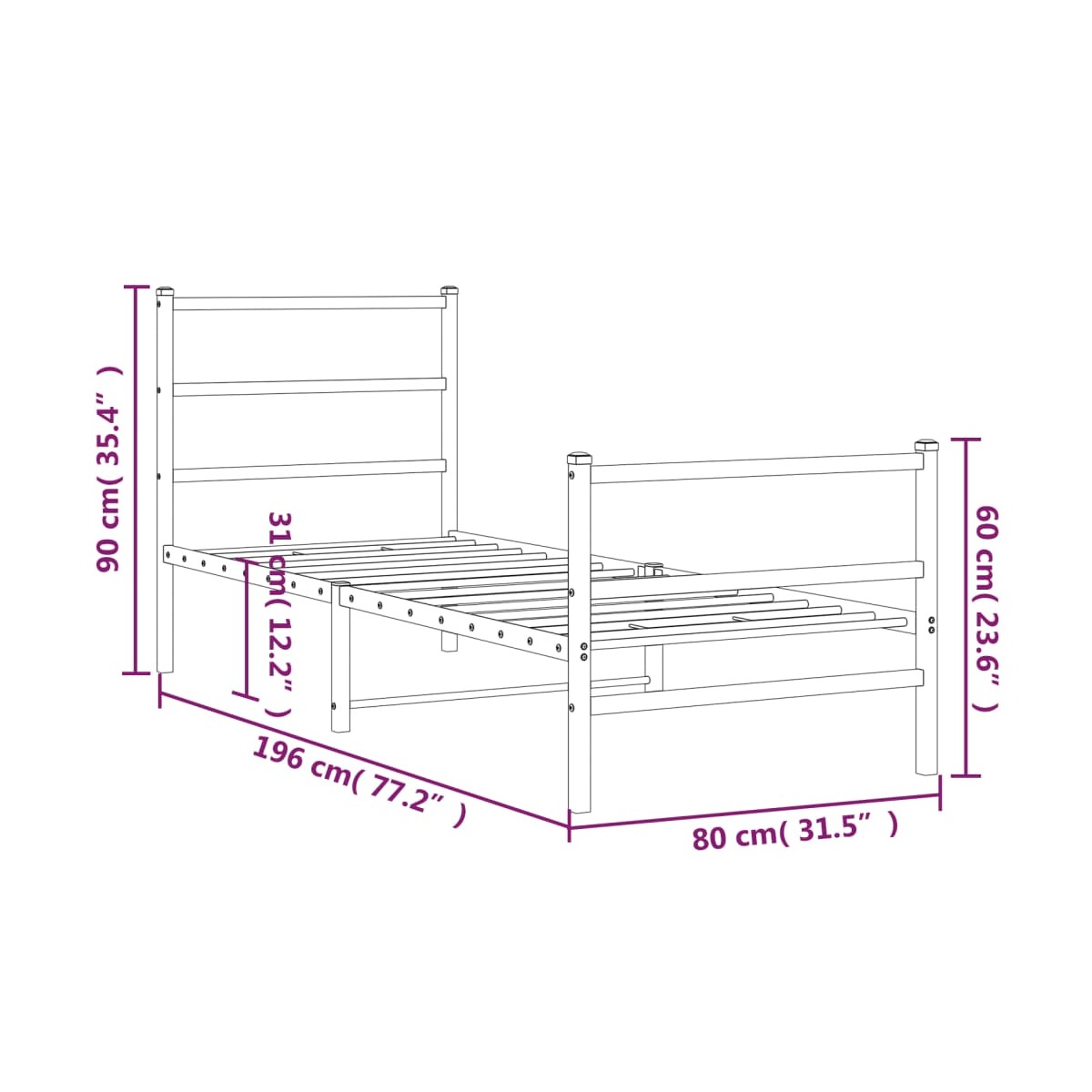 - Dimensiones adecuadas del colchón: 75 x 190 cm (ancho x largo) (el colchón no está incluido)