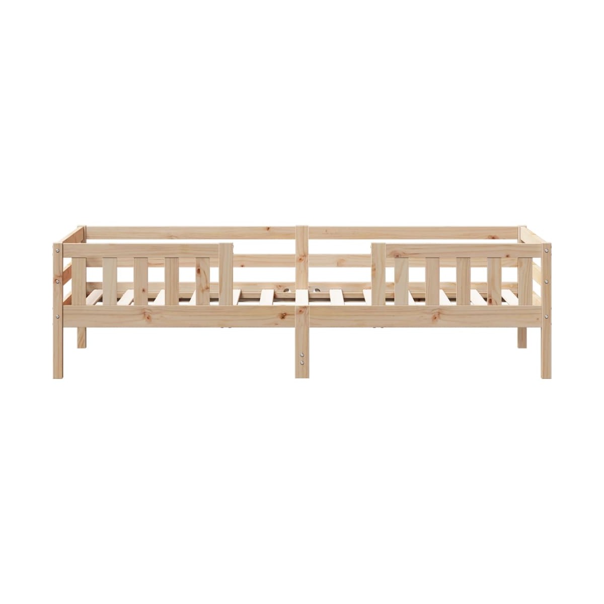 ¡Añade un toque moderno a tu dormitorio con esta estructura de cama! Es un aporte práctico y decorativo para tu hogar. Estructura estable y duradera: La madera de pino maciza es conocida por su resistencia y durabilidad. Sus vetas rectas y sus característicos nudos contribuyen a su encanto rústico.Listones robustos: Los listones de madera contrachapada proporcionan una buena distribución del peso, lo que garantiza que el colchón se mantenga en tu sitio con cada giro y vuelta del cuerpo mientras duermes.Diseño moderno: ¡Da un estilo moderno a tu casa! El moderno diseño posee líneas limpias, aspectos minimalistas y luz natural como parte del estilo de interiorismo. Información útil:El colchón no está incluido con la cama. Disponemos de una variada selección de colchones. Puedes echar un vistazo a nuestra tienda para buscar el colchón correspondiente.