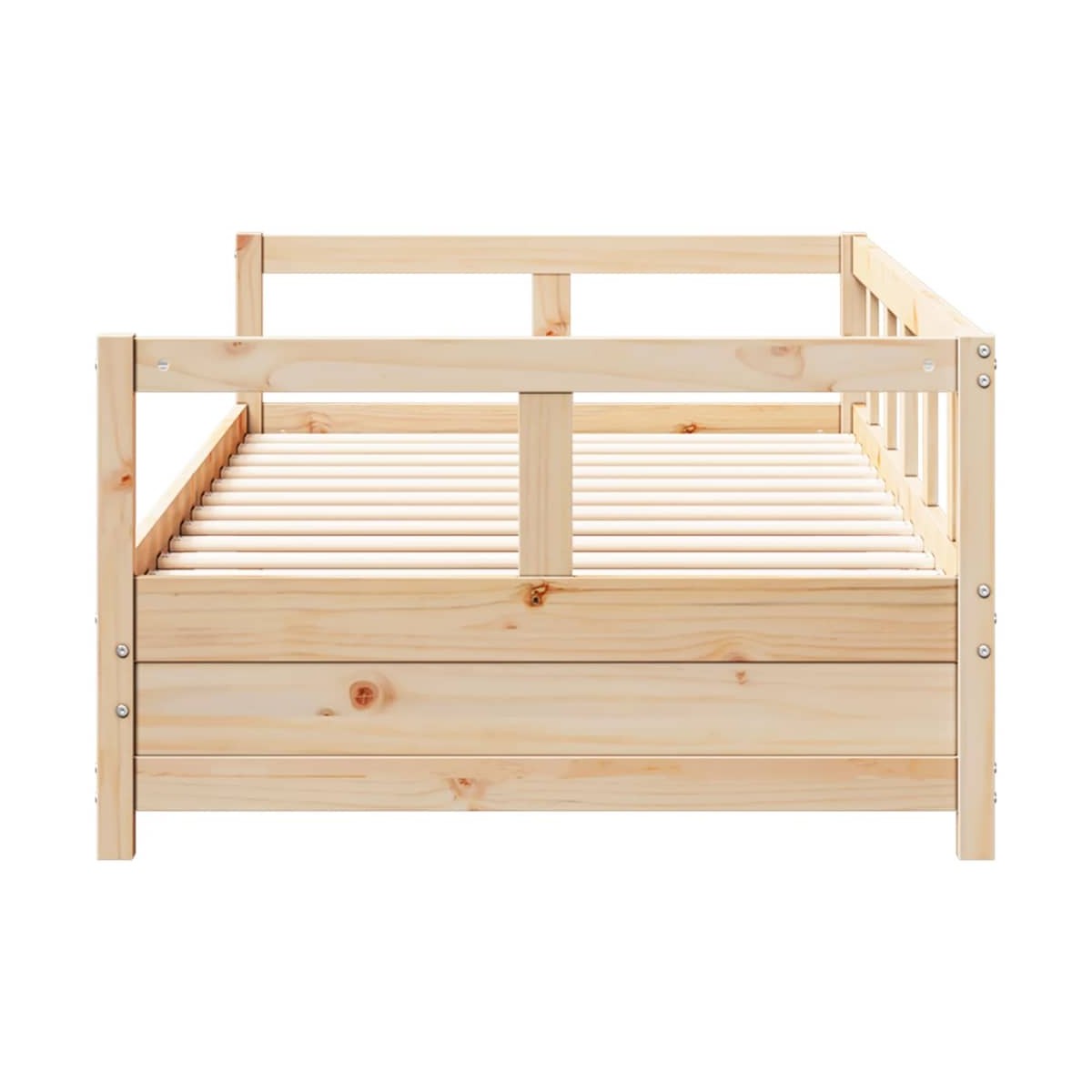 Este sofá cama, que sirve como sofá y cama, es un complemento práctico y llamativo para tu salón o dormitorio.Estructura estable y duradera: La madera de pino maciza es conocida por su resistencia y durabilidad. Sus vetas rectas y sus característicos nudos contribuyen a su encanto rústico.Sofá cama versátil: El sofá cama funciona como sofá durante el día y se convierte fácilmente en cama individual por la noche, lo que proporciona una solución práctica para recibir invitados y maximizar el espacio.Somier de láminas para un soporte óptimo: La estructura de cama está equipada con un somier de láminas para el apoyo y la transpirabilidad del colchón.Patas estables y duraderas: Esta cama está sostenida por patas resistentes, lo que garantiza estabilidad, seguridad y firmeza.Información útil:Ten en cuenta que la entrega incluye únicamente una estructura de cama. El colchón no está incluido. Puedes echar un vistazo a nuestra tienda para buscar el correspondiente colchón.