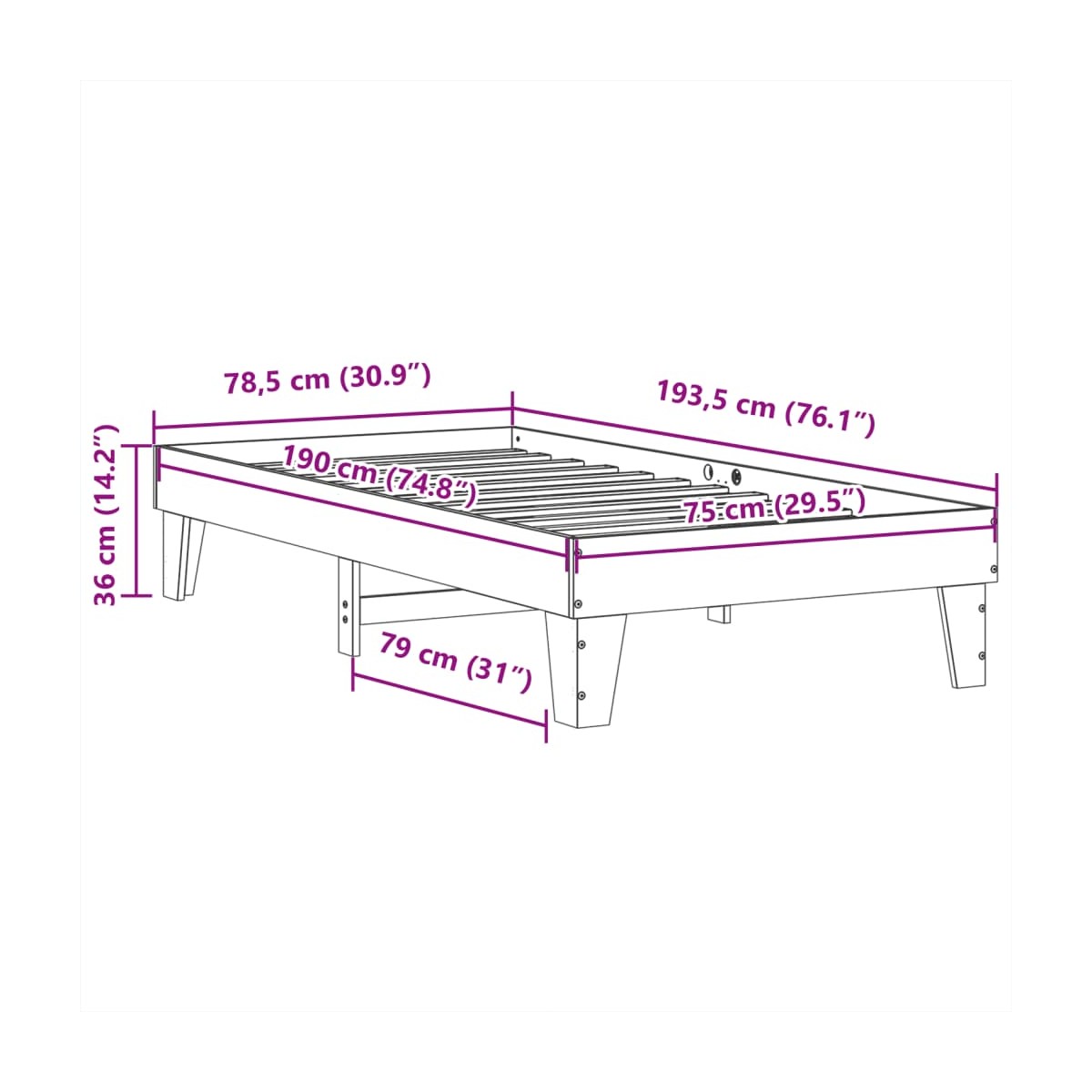 - Dimensiones adecuadas del colchón: 75 x 190 cm (ancho x largo) (colchón no incluido)