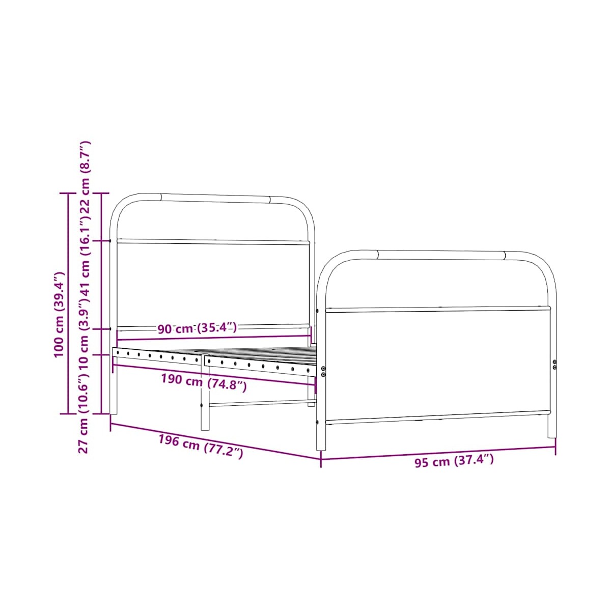 - Dimensiones totales: 196 x 95 x 100 cm (largo x ancho x alto)