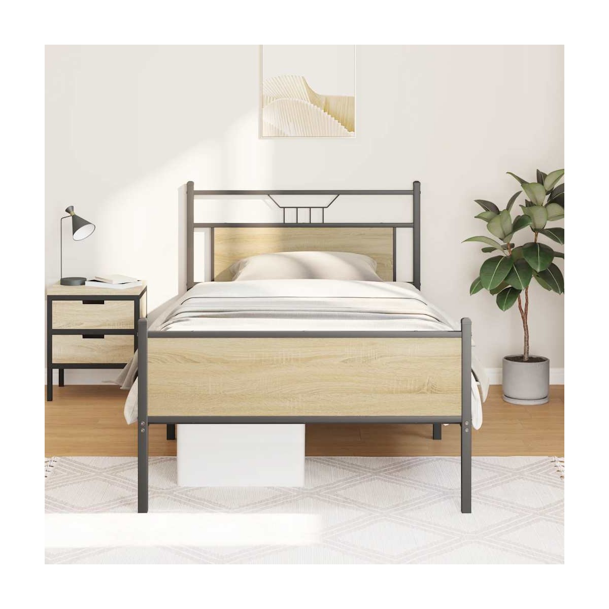 Consigue un sueño más reparador con esta estructura de cama. Es un aporte acogedor para cualquier dormitorio. Estructura estable y duradera: El acero es fuerte, estable y duradero, lo que lo convierte en la opción ideal para una amplia gama de aplicaciones, desde la fabricación de muebles hasta la construcción.Cabecero y estribo de cama funcionales: El cabecero y el estribo de cama mantienen el colchón en su lugar. Además, la cabecera te brinda un excelente soporte para la espalda mientras estás sentado leyendo o mirando la televisión.Espacio de almacenamiento adicional: para mayor comodidad, la base de la cama tiene un espacio adicional debajo para mantener sus cajas de almacenamiento fuera de la vista.Somier de láminas para un soporte óptimo: el marco de cama de metal está equipado con un somier de láminas para brindar soporte y transpirabilidad a su colchón. Información útil:El colchón no está incluido con la cama. Ofrecemos una variada selección de colchones. Puedes echar un vistazo a nuestra tienda para buscar el colchón correspondiente.