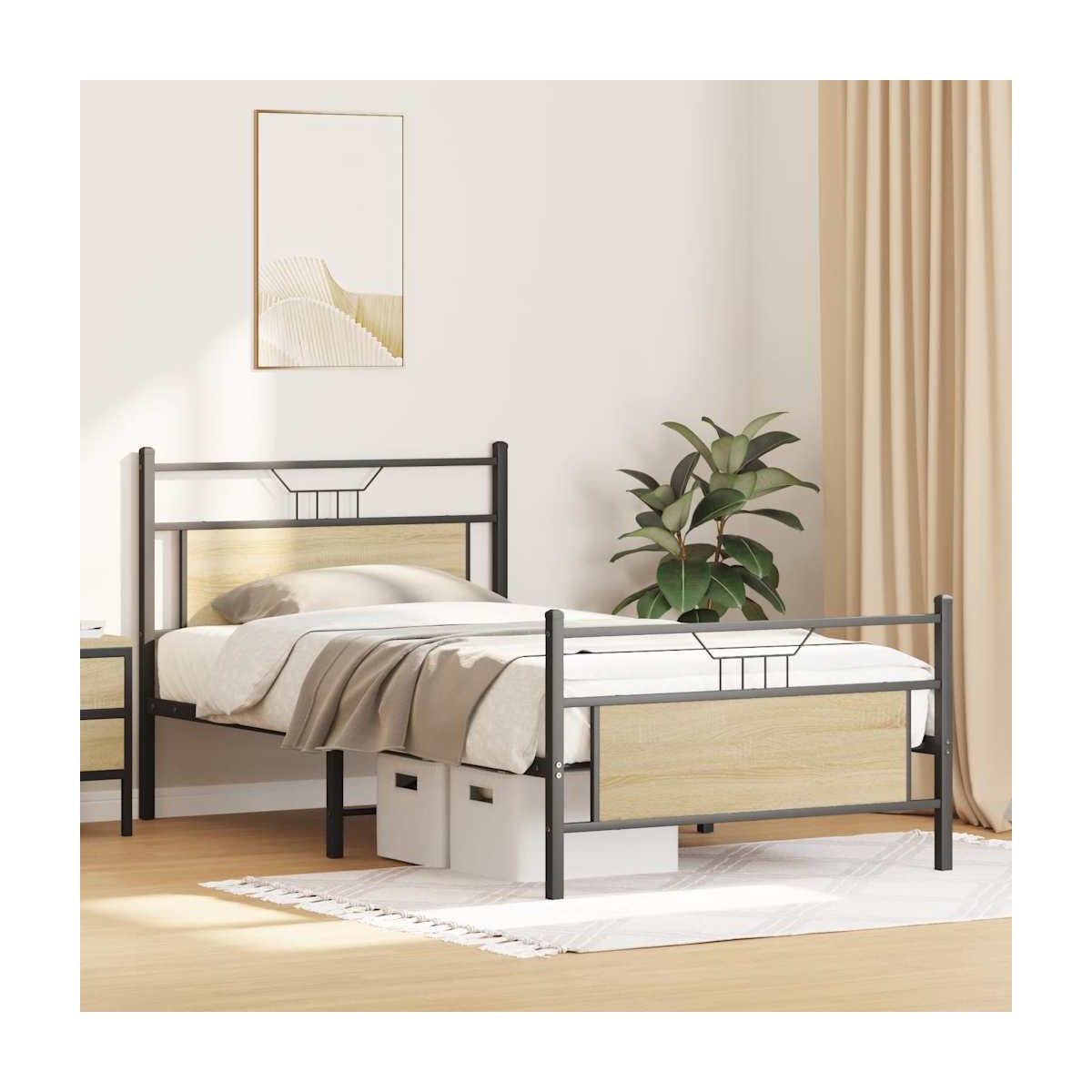 Consigue un sueño más reparador con esta estructura de cama. Es un aporte acogedor para cualquier dormitorio. Estructura estable y duradera: El acero es fuerte, estable y duradero, lo que lo convierte en la opción ideal para una amplia gama de aplicaciones, desde la fabricación de muebles hasta la construcción.Cabecero y estribo de cama funcionales: El cabecero y el estribo de cama mantienen el colchón en su lugar. Además, la cabecera te brinda un excelente soporte para la espalda mientras estás sentado leyendo o mirando la televisión.Espacio de almacenamiento adicional: para mayor comodidad, la base de la cama tiene un espacio adicional debajo para mantener sus cajas de almacenamiento fuera de la vista.Somier de láminas para un soporte óptimo: el marco de cama de metal está equipado con un somier de láminas para brindar soporte y transpirabilidad a su colchón. Información útil:El colchón no está incluido con la cama. Ofrecemos una variada selección de colchones. Puedes echar un vistazo a nuestra tienda para buscar el colchón correspondiente.